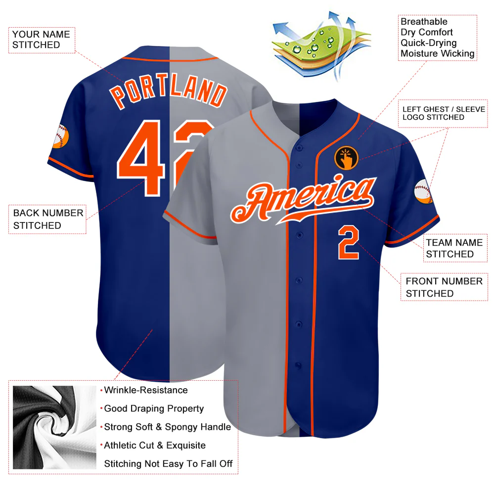 Custom Royal Orange-Gray Authentic Split Fashion Baseball Jersey