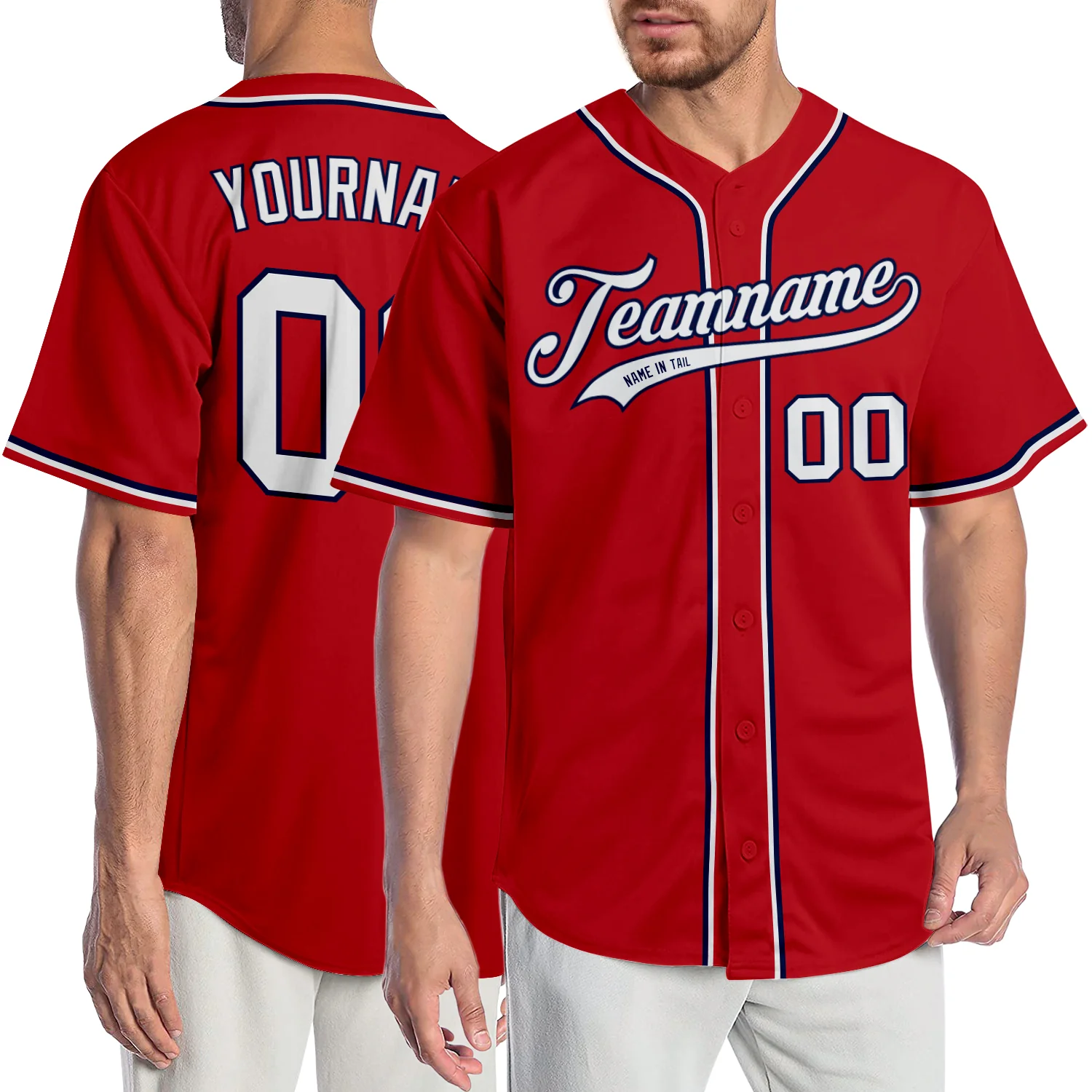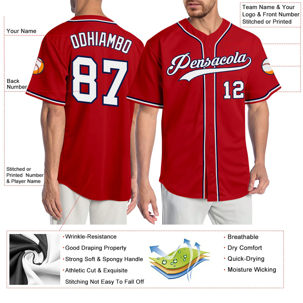 Custom Red White-Navy Authentic Baseball Jersey