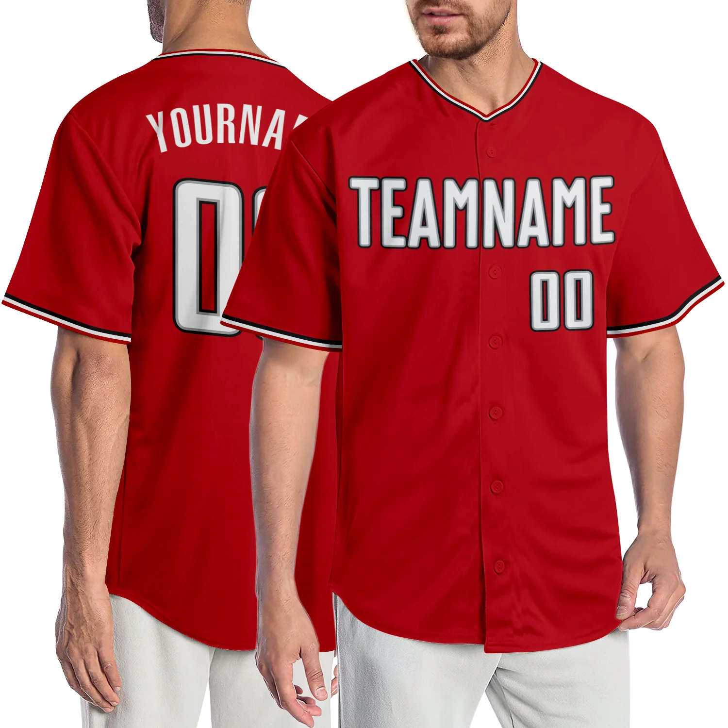 Custom Red White-Gray Authentic Split Fashion Baseball Jersey