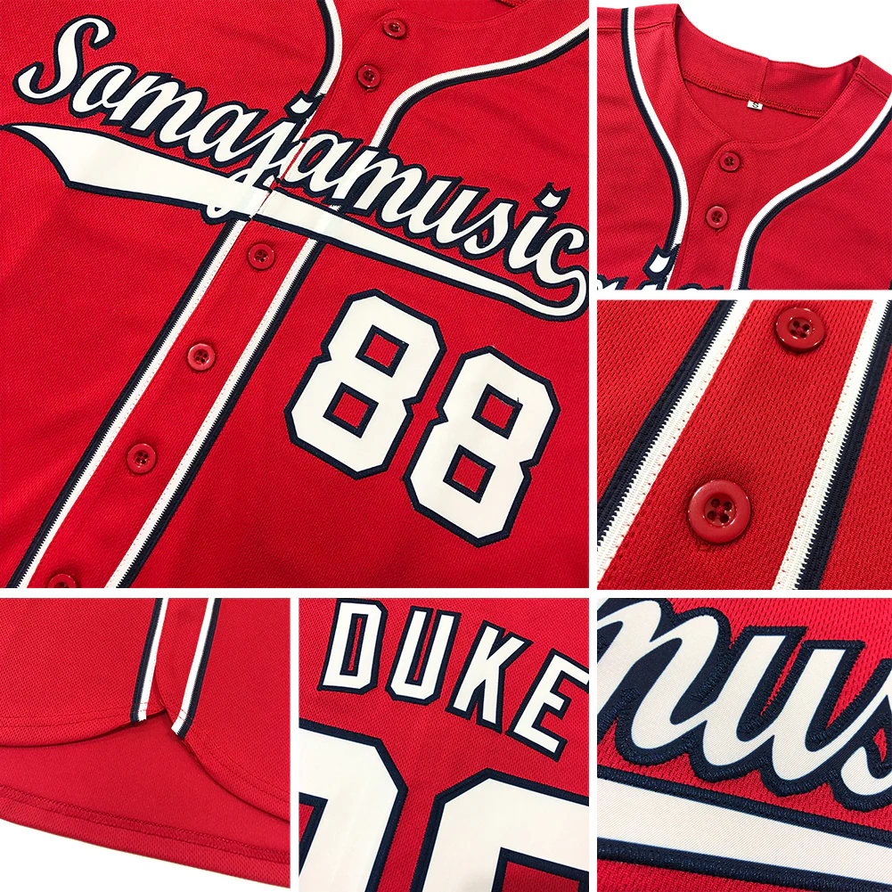 Custom Red Navy-Gold Authentic Baseball Jersey