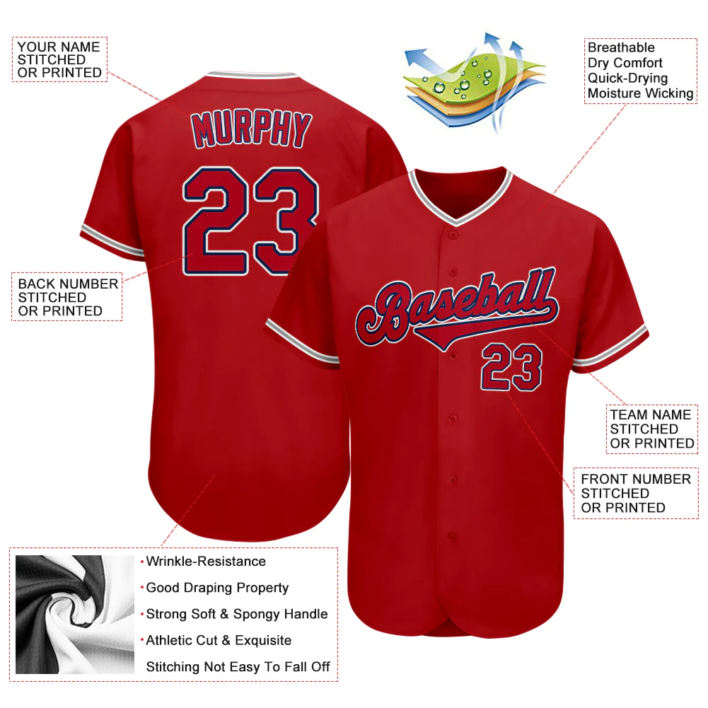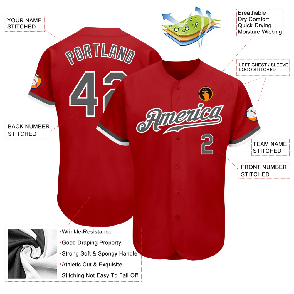 Custom Red Steel Gray-White Authentic Baseball Jersey