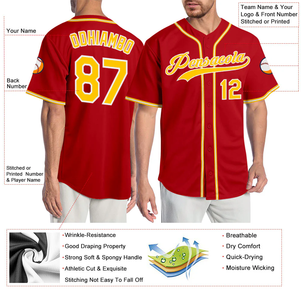 Custom Red Gold-White Authentic Baseball Jersey