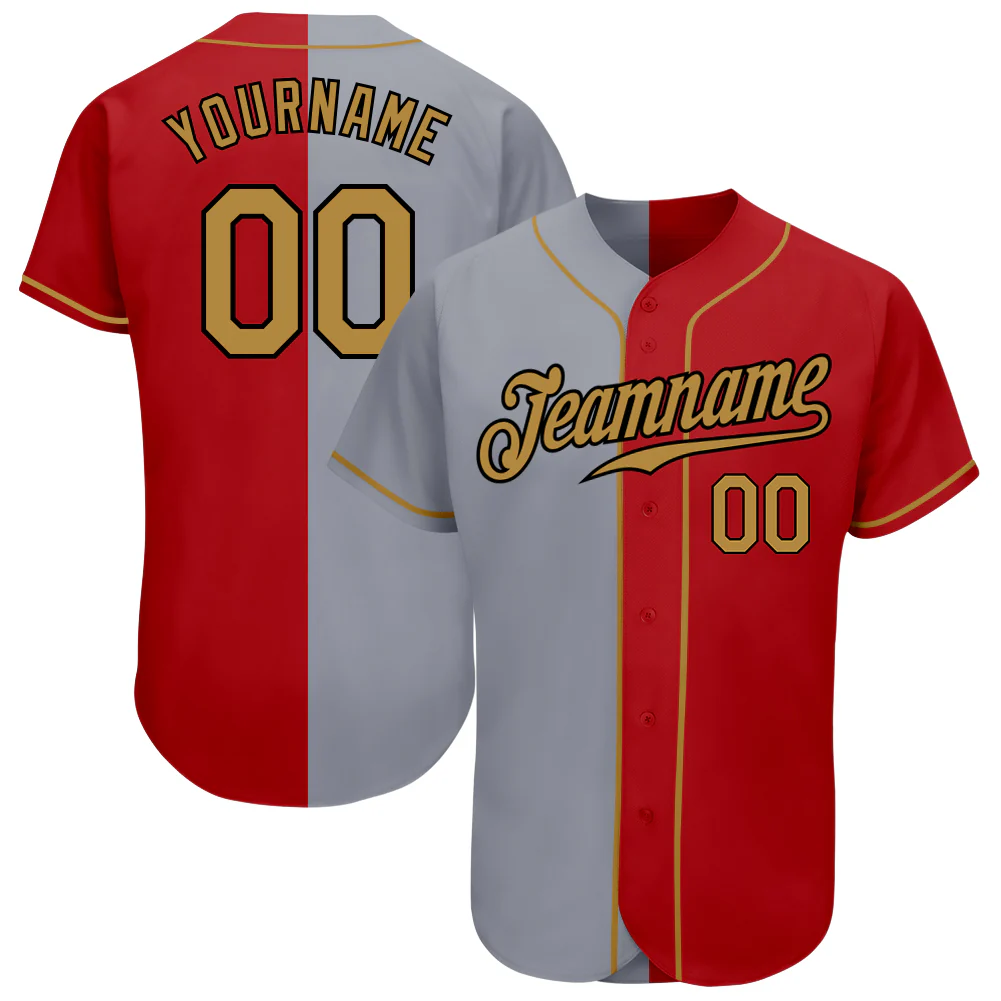 Custom Red Old Gold-Gray Authentic Split Fashion Baseball Jersey