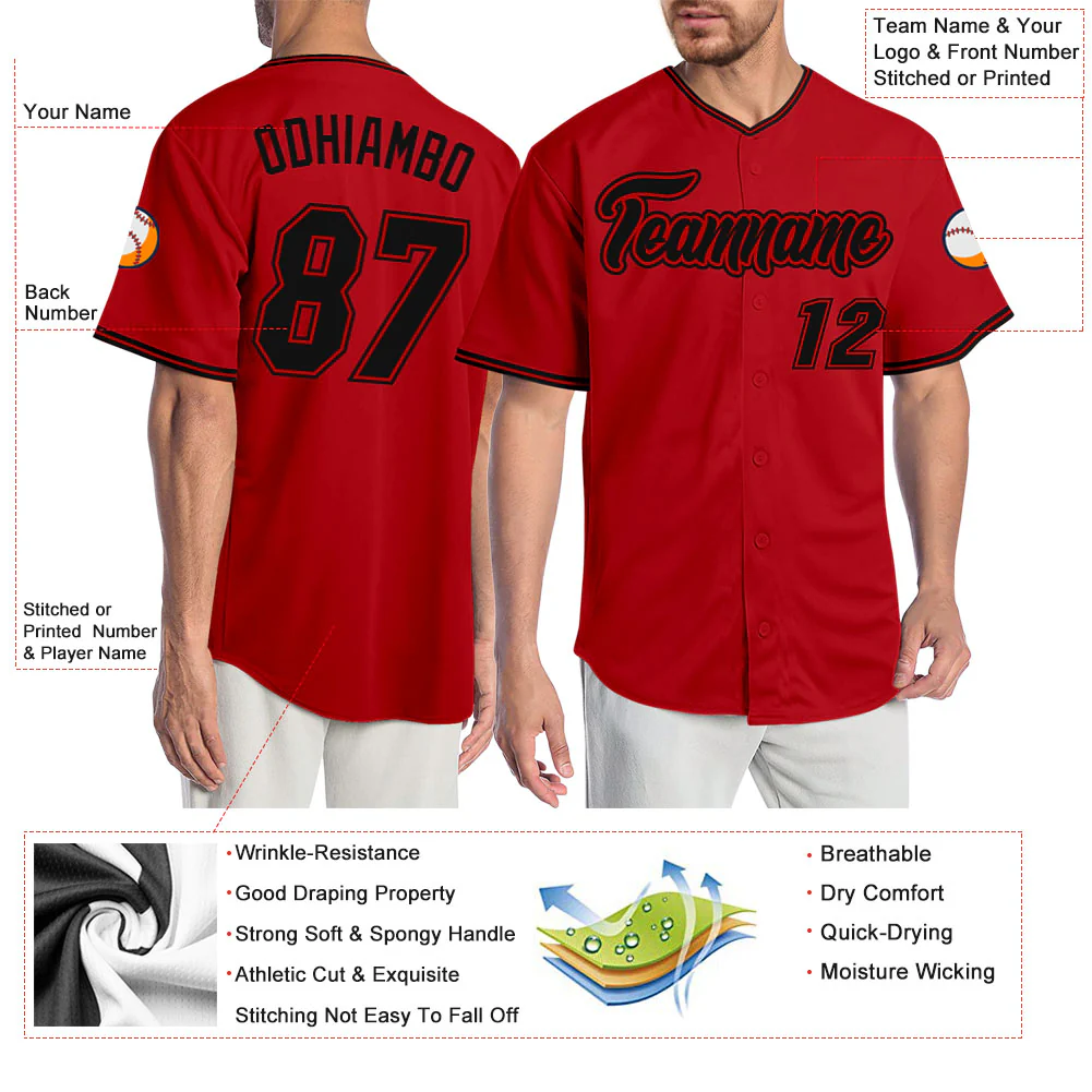 Custom Red Black-Red Authentic Baseball Jersey