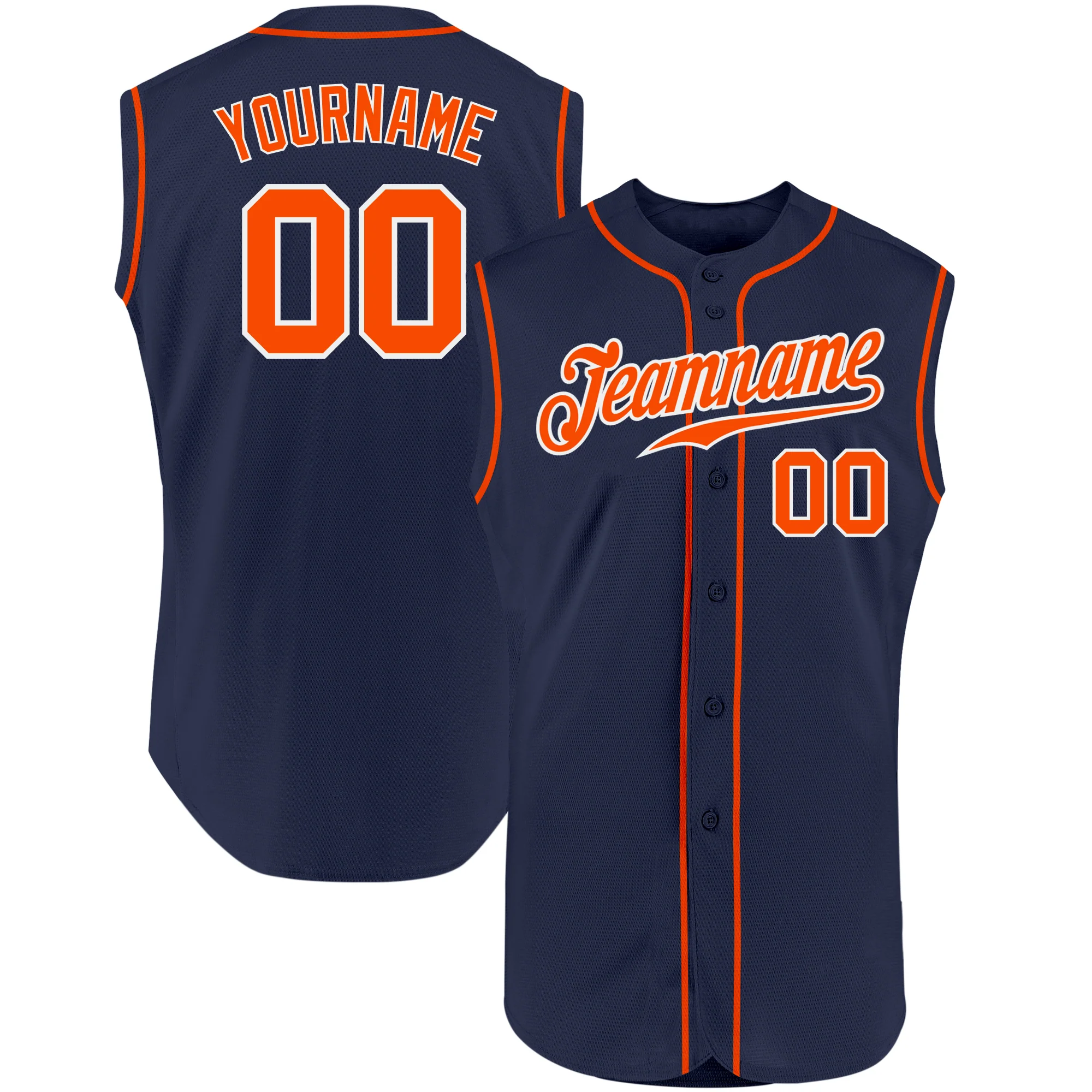 Custom Navy Orange-White Authentic Sleeveless Baseball Jersey