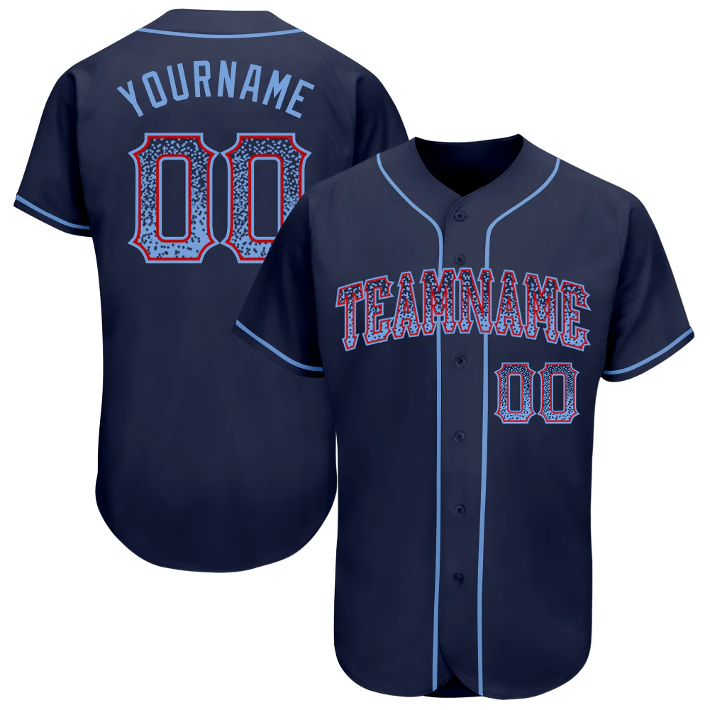 Custom Navy Light Blue-Red Authentic Drift Fashion Baseball Jersey