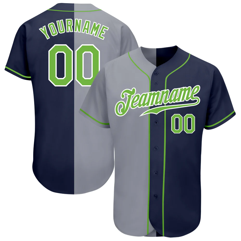 Custom Navy Neon Green-Gray Authentic Split Fashion Baseball Jersey