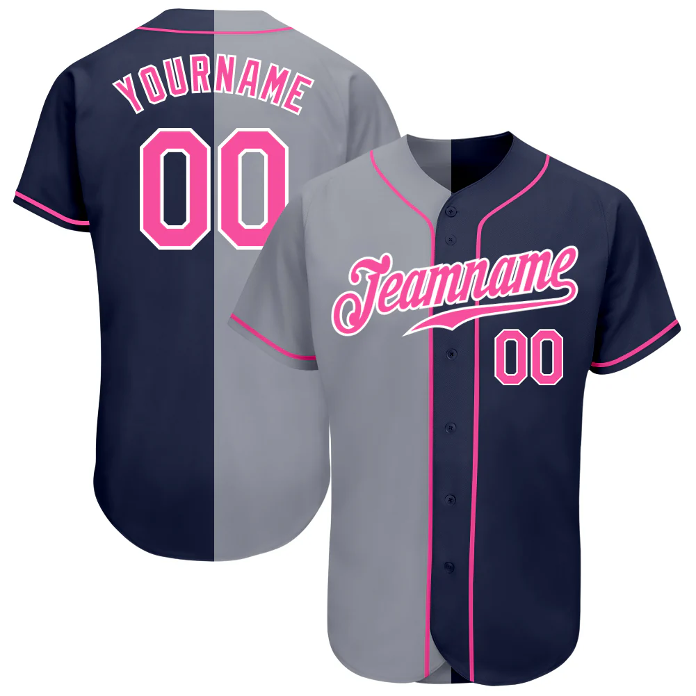 Custom Navy Pink-Gray Authentic Split Fashion Baseball Jersey