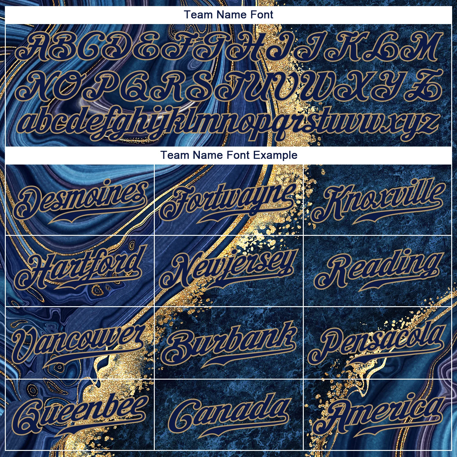 Custom Navy Navy-Old Gold 3D Pattern Design Marble Authentic Baseball Jersey