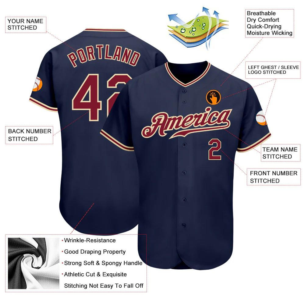 Custom Navy Crimson-City Cream Authentic Baseball Jersey