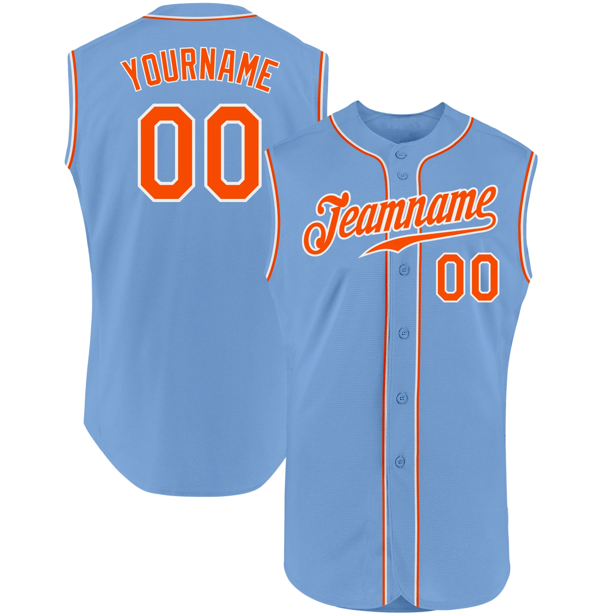 Custom Light Blue Orange-White Authentic Sleeveless Baseball Jersey