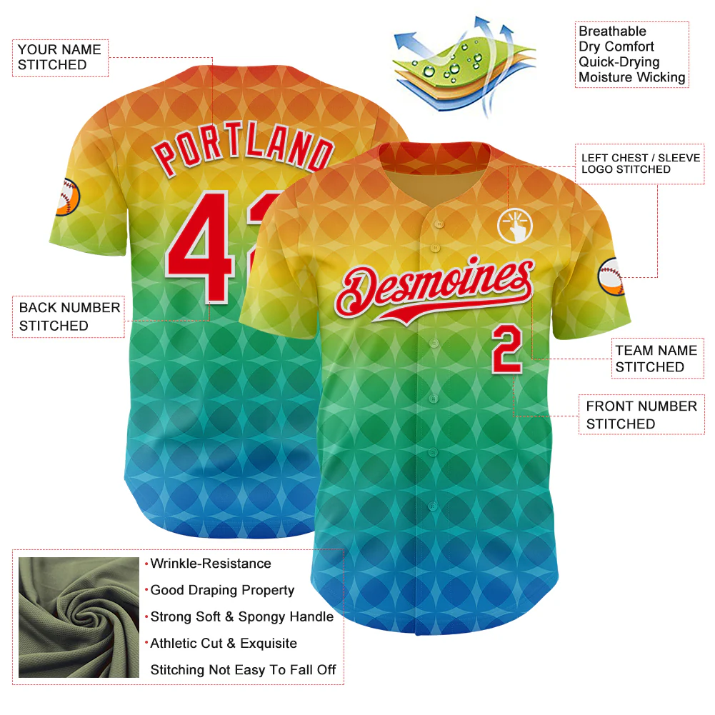 Custom Yellow Fire Red Green Blue-White Valentine's Day Pride Month Love Is Love Authentic Baseball Jersey