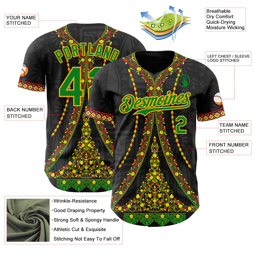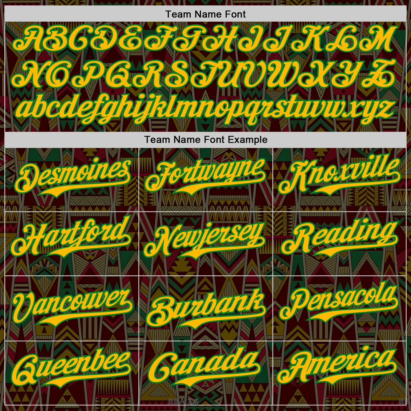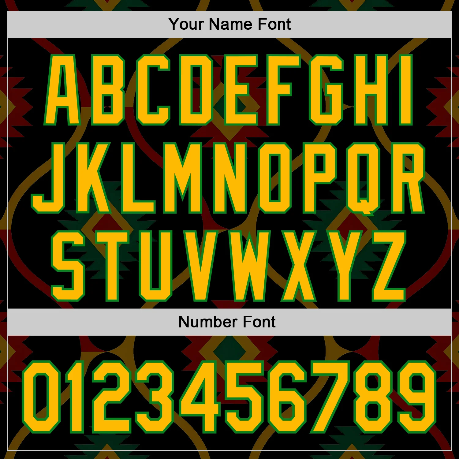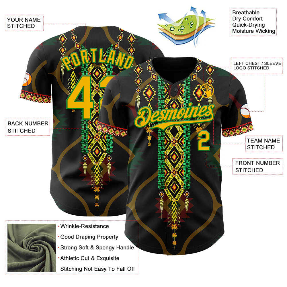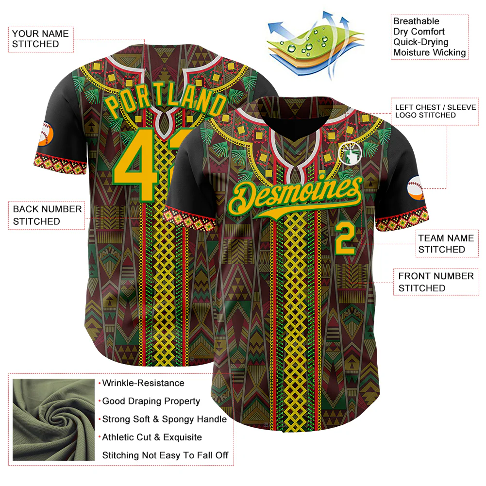 Custom Black Gold Grass Green-Red 3D Pattern Design Black History Month Africa Tribal Authentic Baseball Jersey