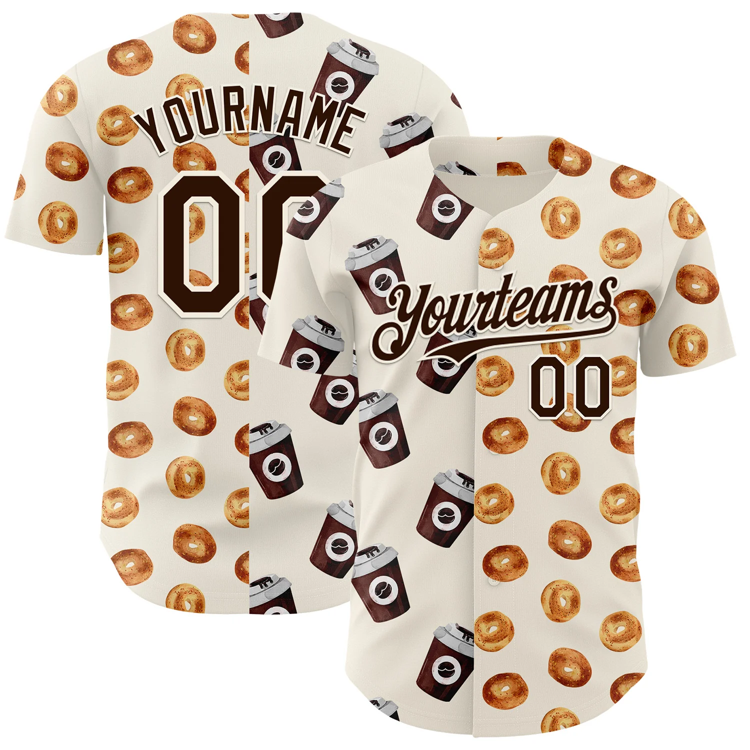 Custom Cream Brown Valentine's Day Bagel Meets Coffee Authentic Baseball Jersey