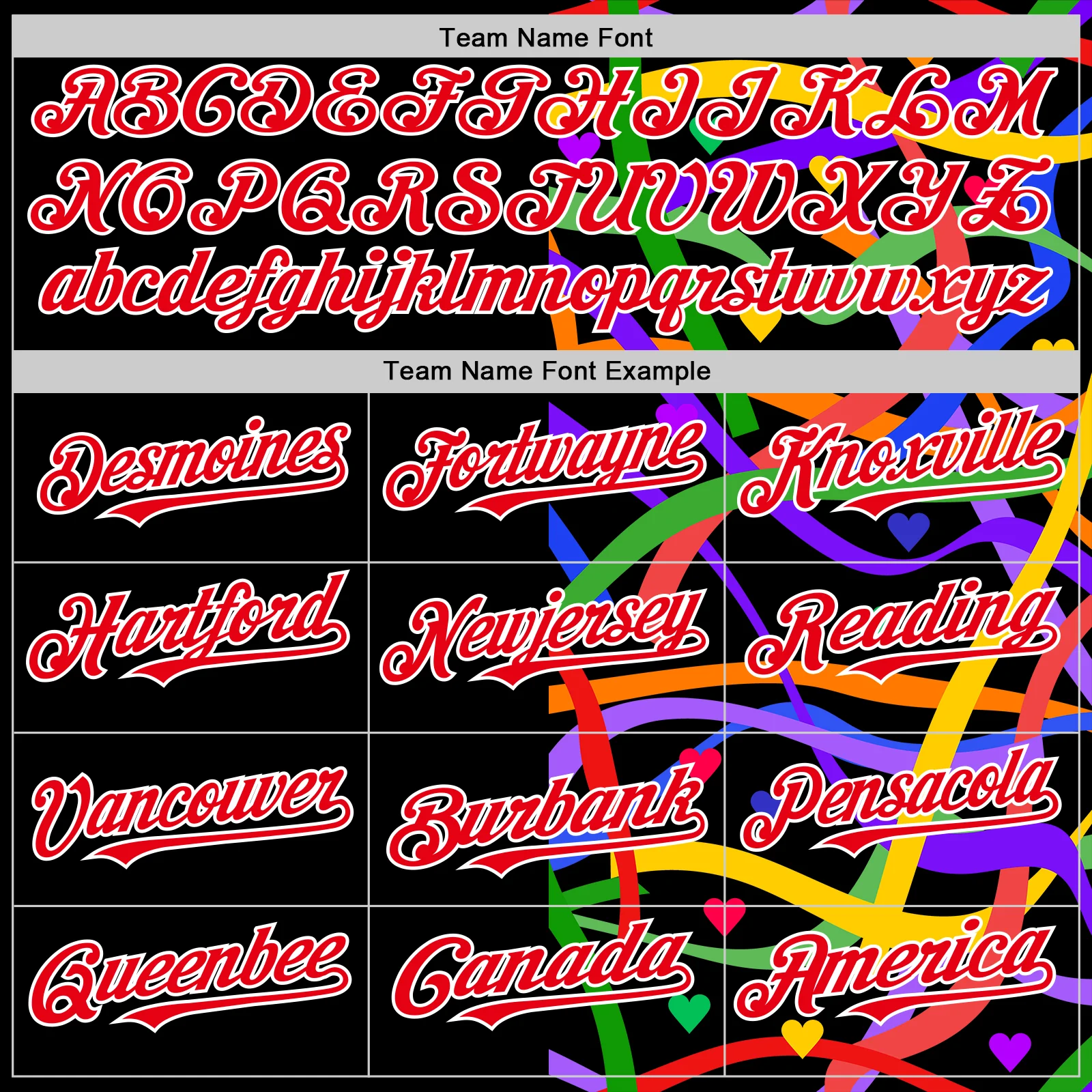Custom Black Fire Red-White Valentine's Day Love Heart Pride Month Love Is Love Authentic Baseball Jersey