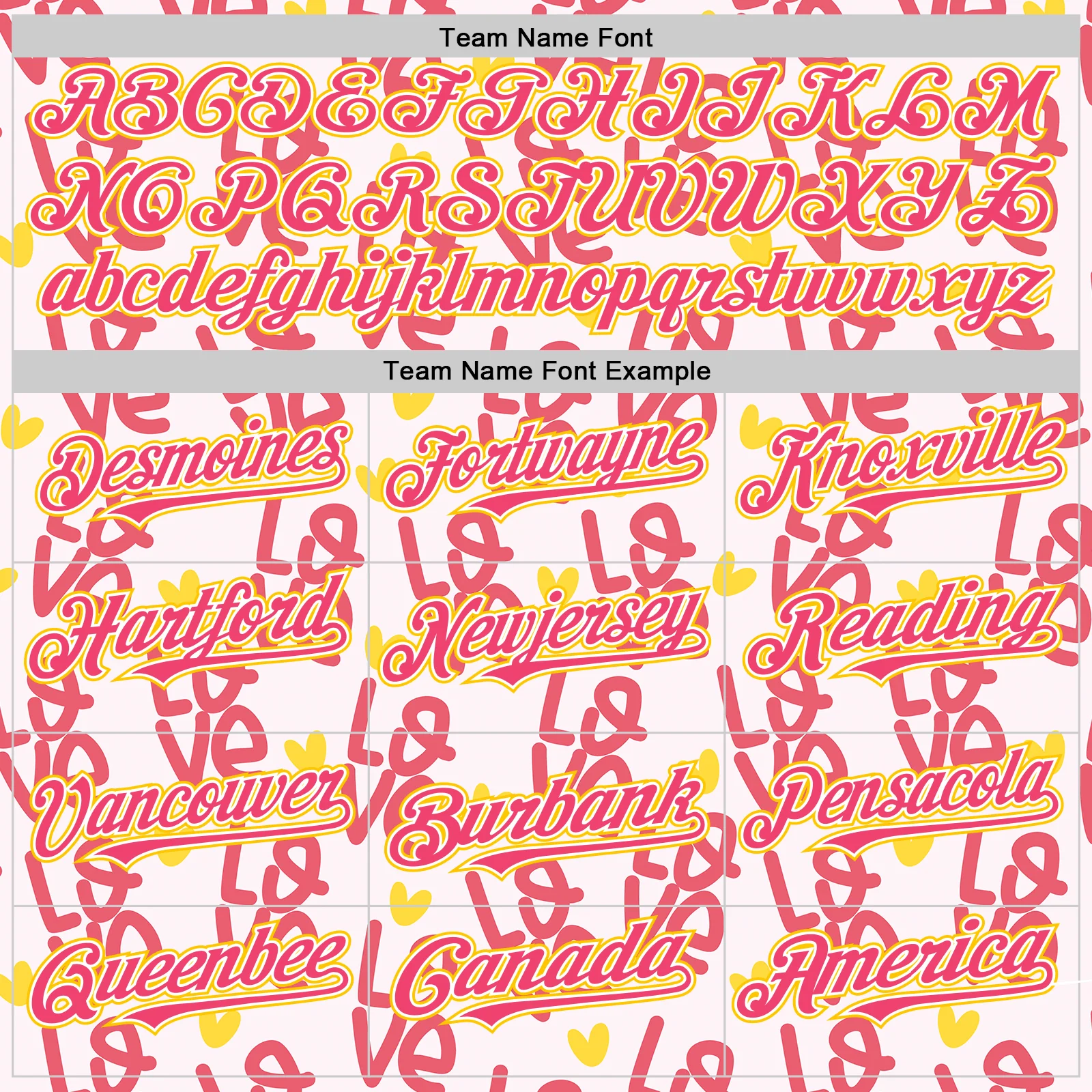 Custom Light Pink Neon Pink Yellow-White Valentine's Day Love Heart Authentic Baseball Jersey