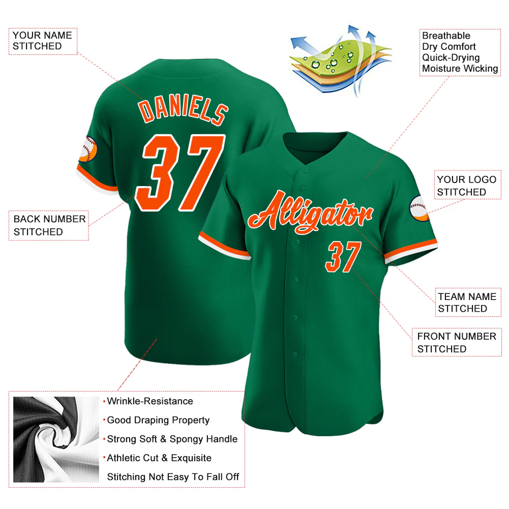 Custom Kelly Green Orange-White Authentic Baseball Jersey