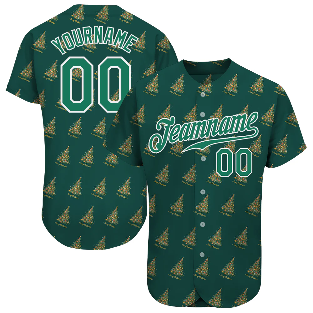 Custom Kelly Green Kelly Green-White Christmas 3D Authentic Baseball Jersey