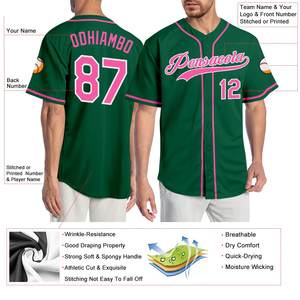 Custom Kelly Green Pink-White Authentic Baseball Jersey