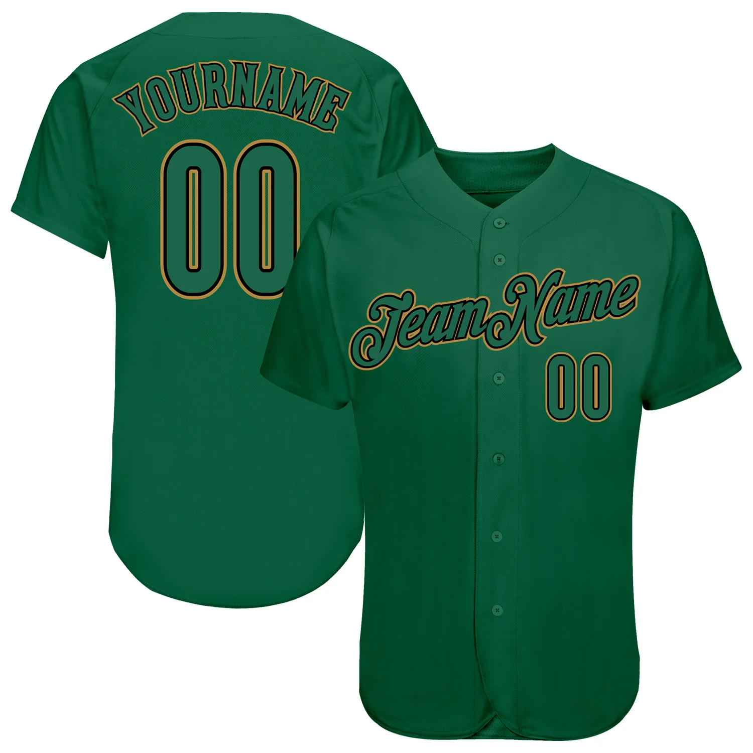 Custom Kelly Green Gold-White Authentic Baseball Jersey