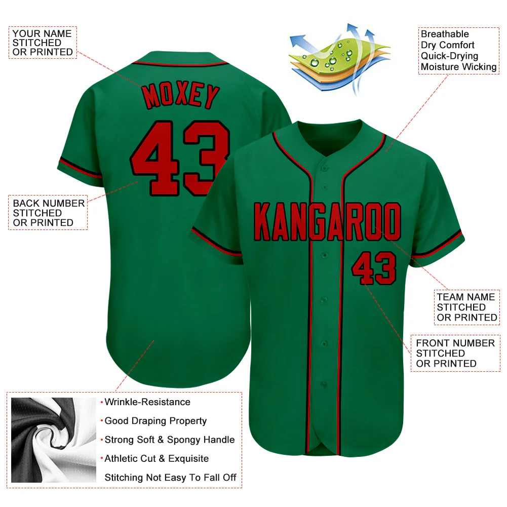Custom Kelly Green Red-Black Authentic Baseball Jersey