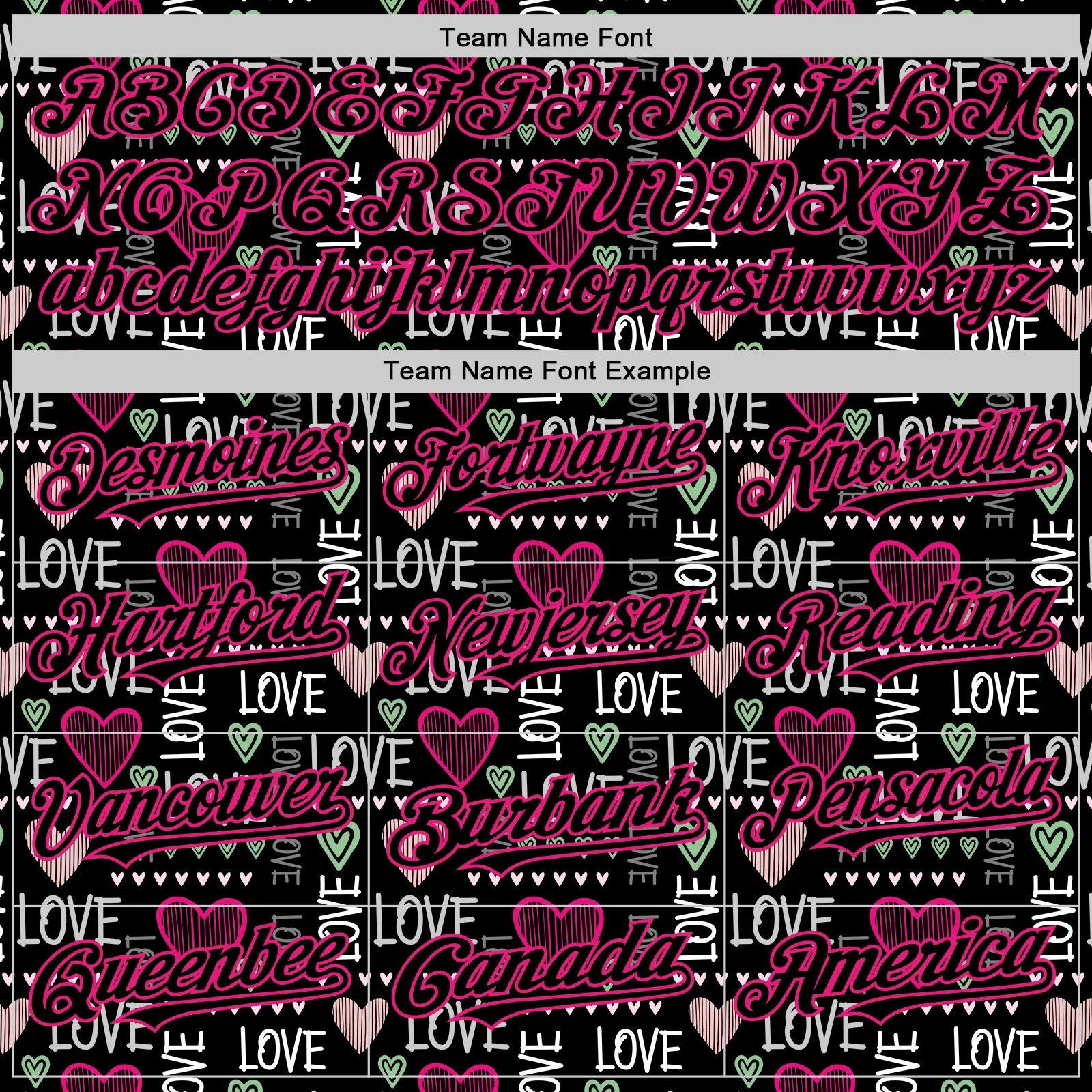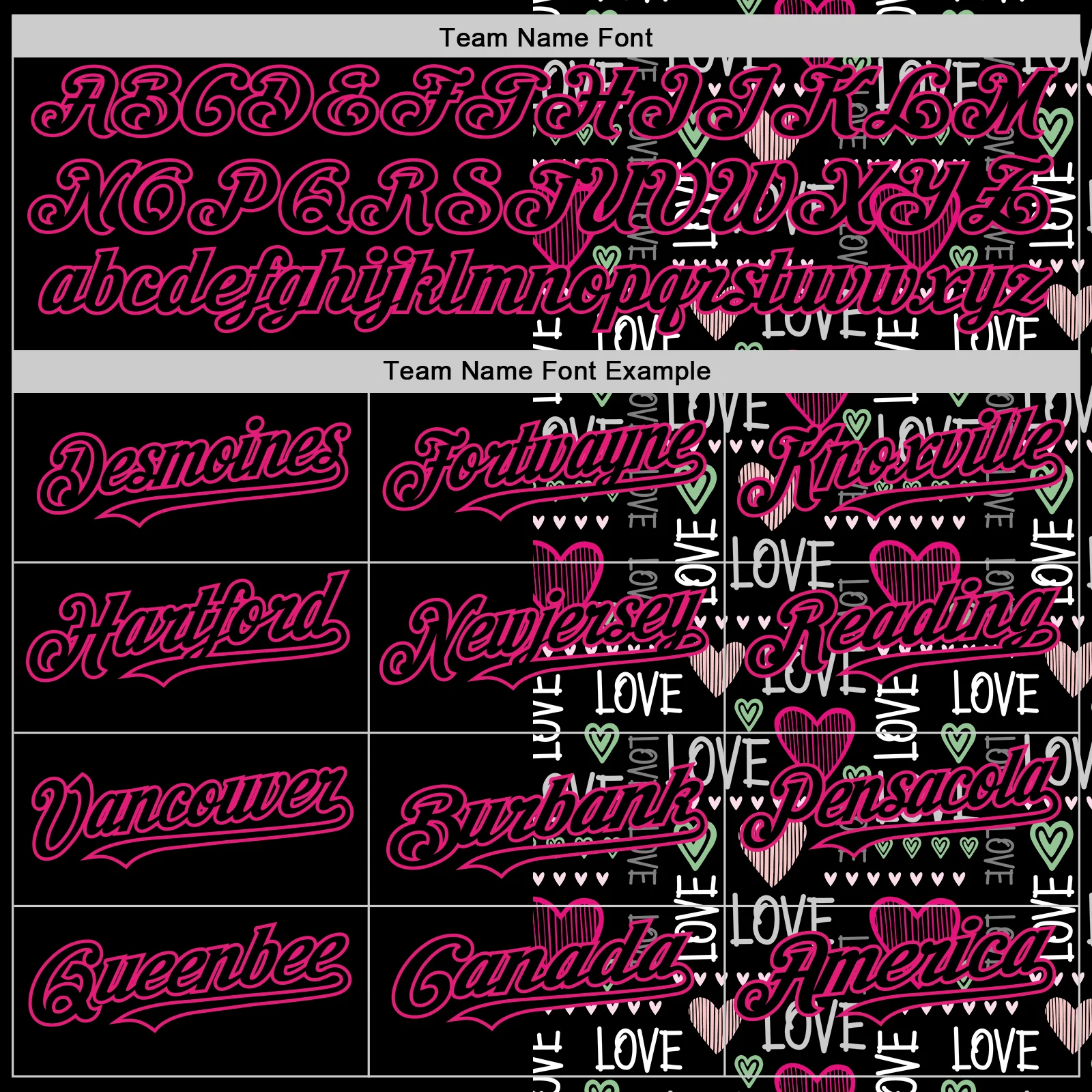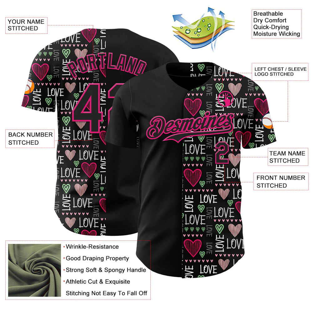 Custom Black Hot Pink Valentine's Day Love Heart Authentic Baseball Jersey