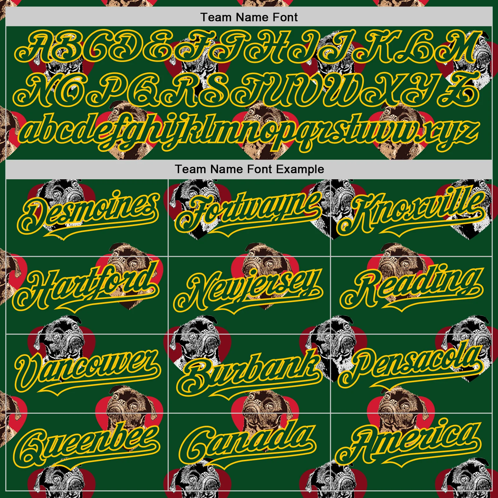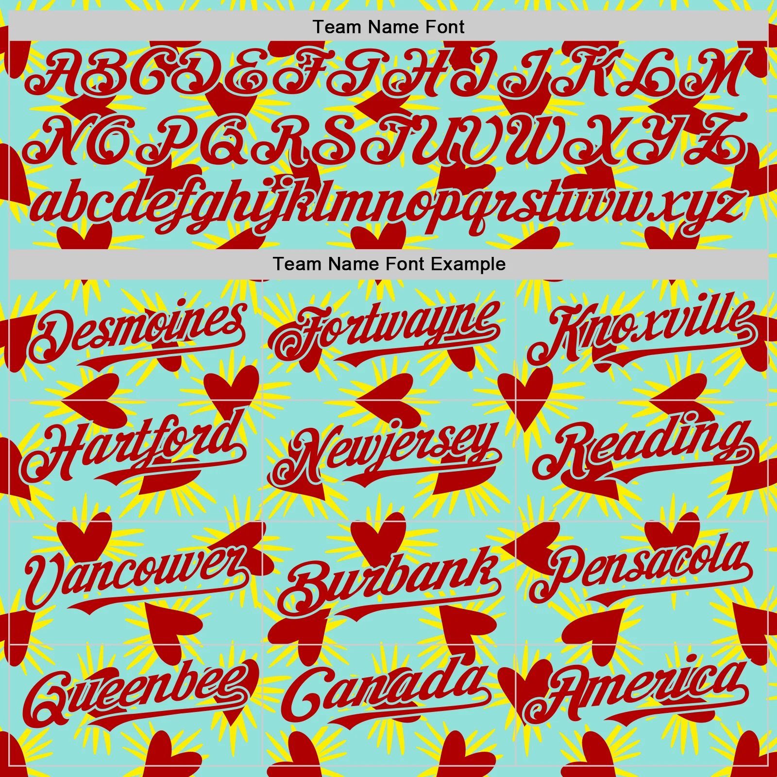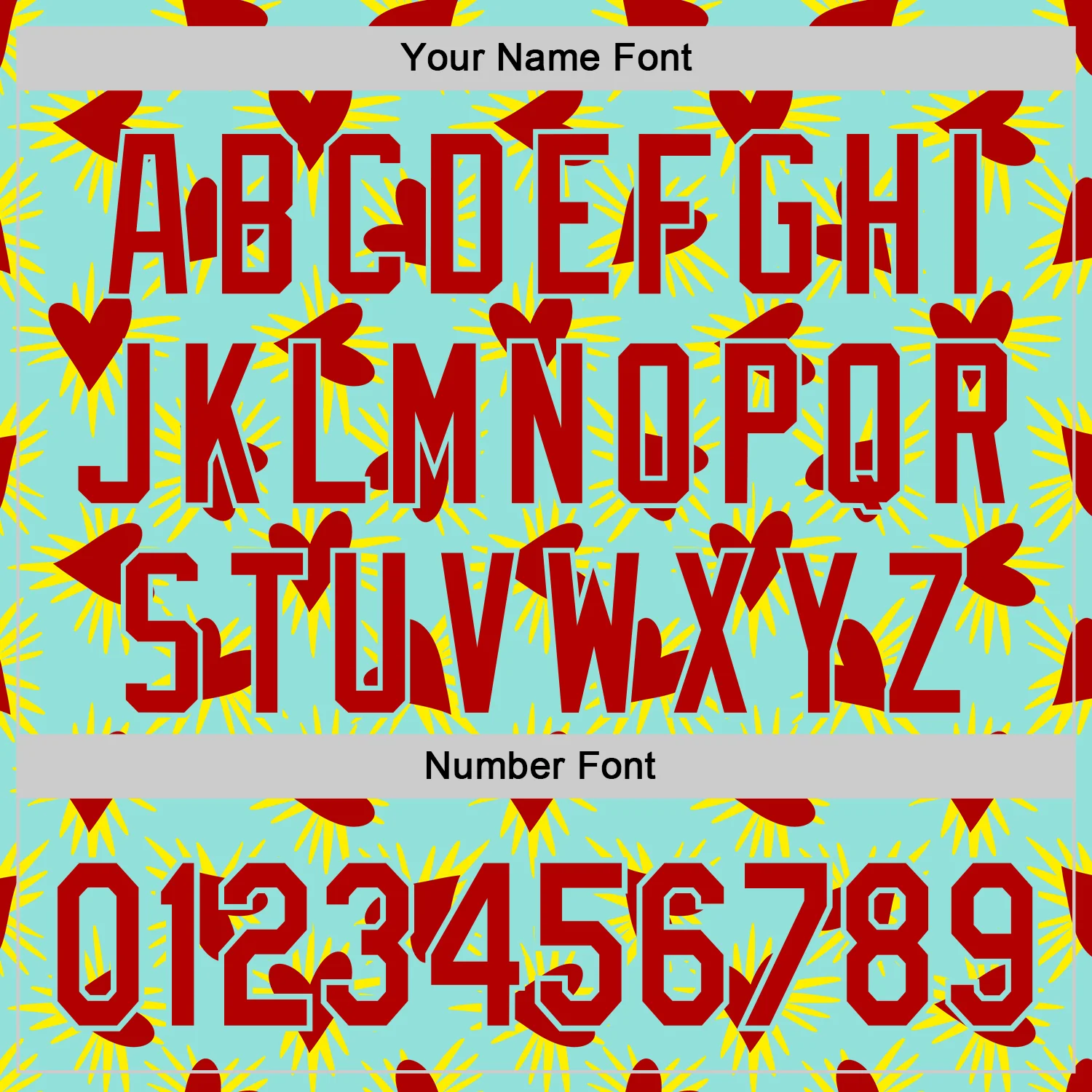 Custom Green Yellow Valentine's Day Love Heart Authentic Baseball Jersey