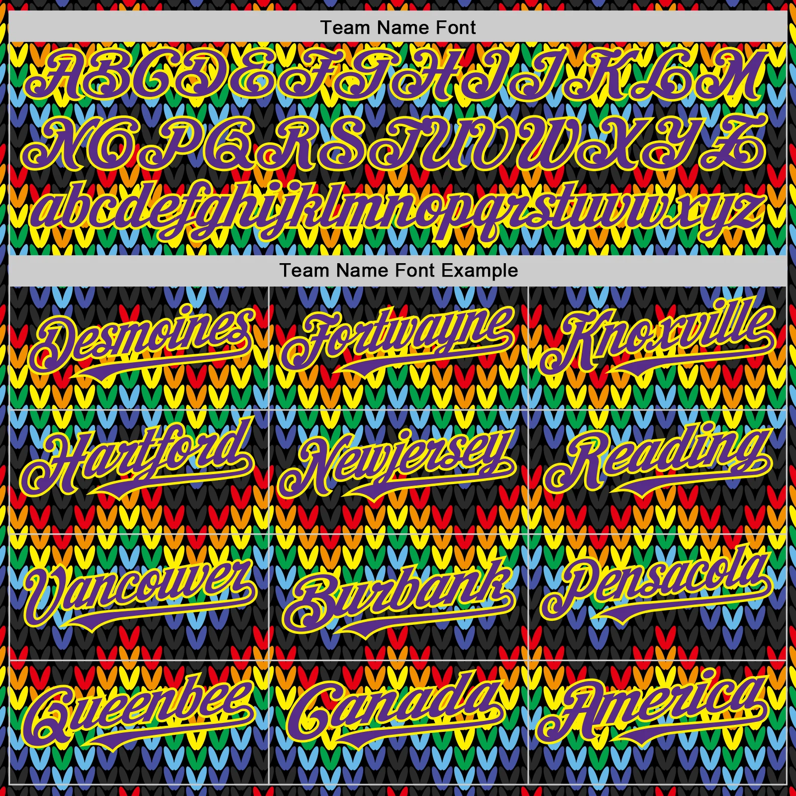 Custom Black Purple-Light Yellow Valentine's Day Love Heart Pride Month Love Is Love Authentic Baseball Jersey