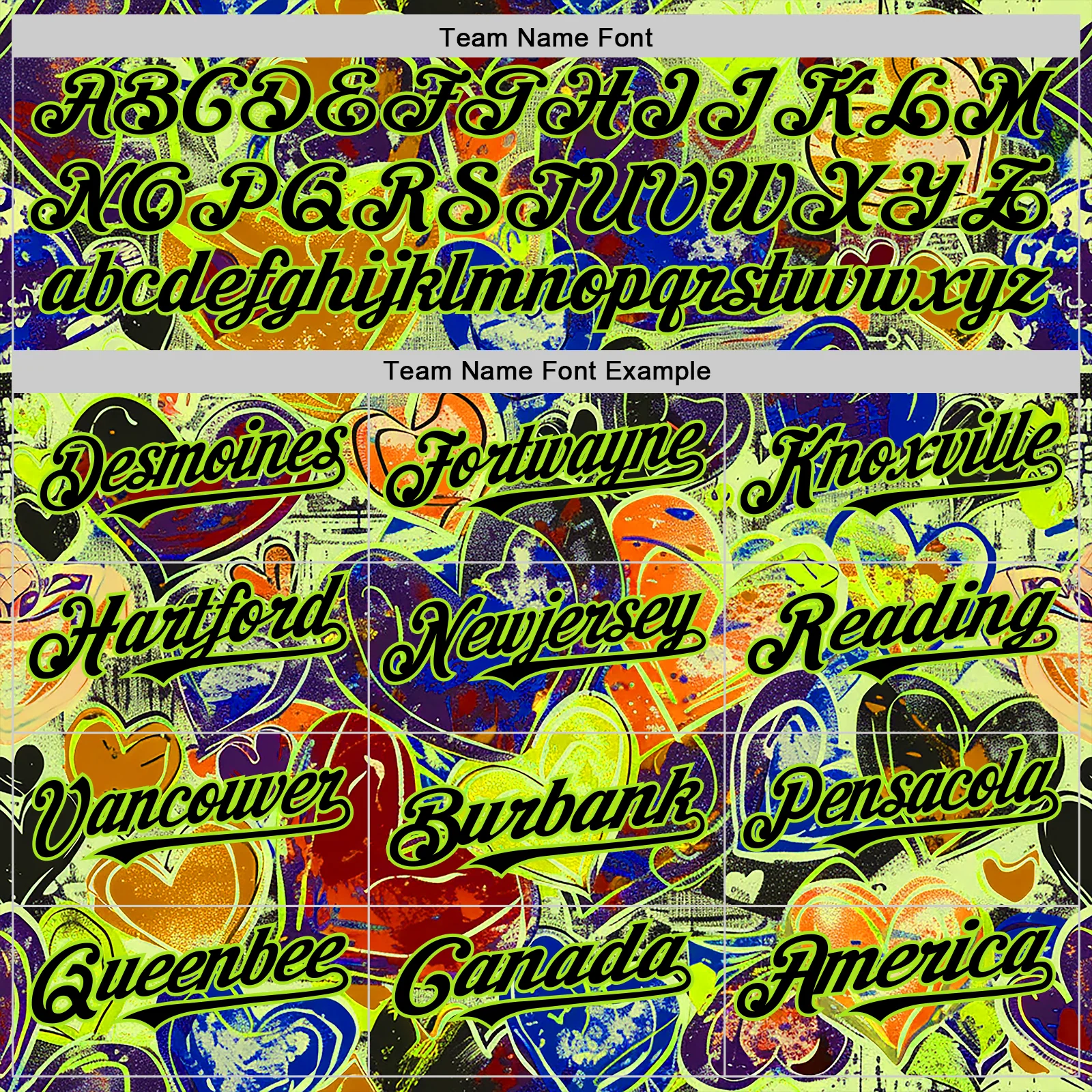 Custom Black Neon Green Valentine's Day Love Heart Authentic Baseball Jersey