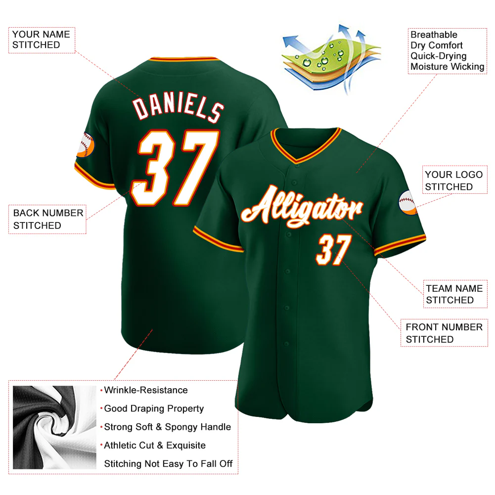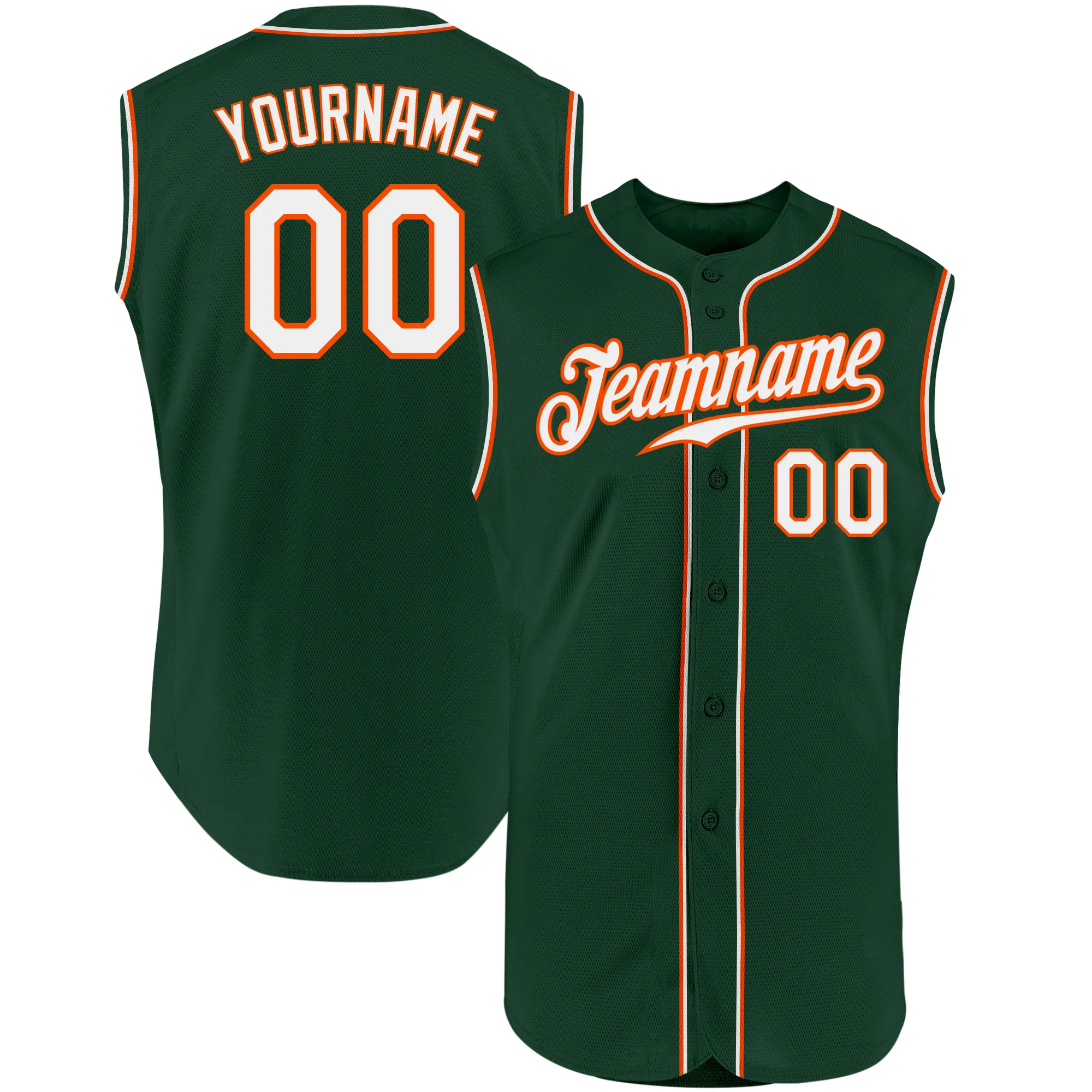 Custom Green Orange-White Authentic Sleeveless Baseball Jersey