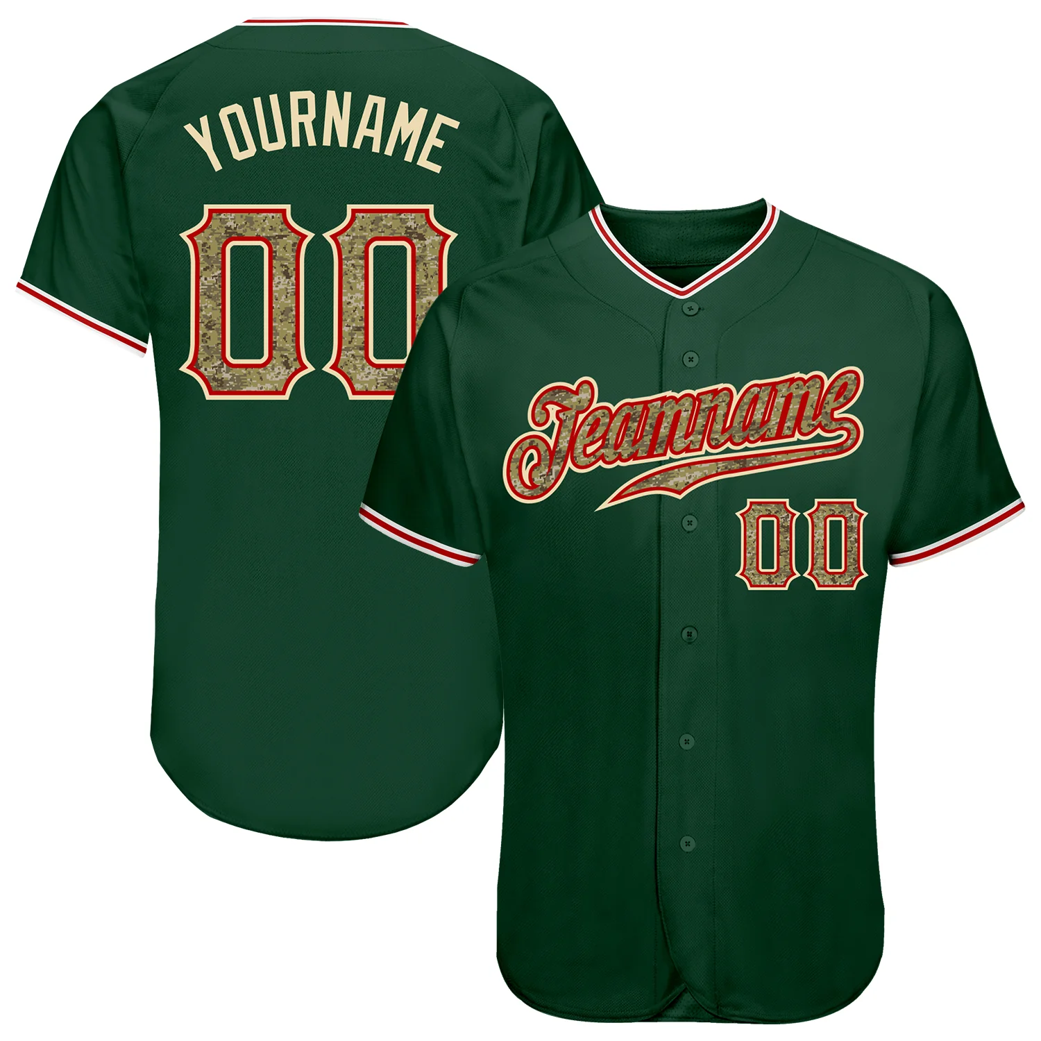 Custom Green Camo-Red Authentic Baseball Jersey
