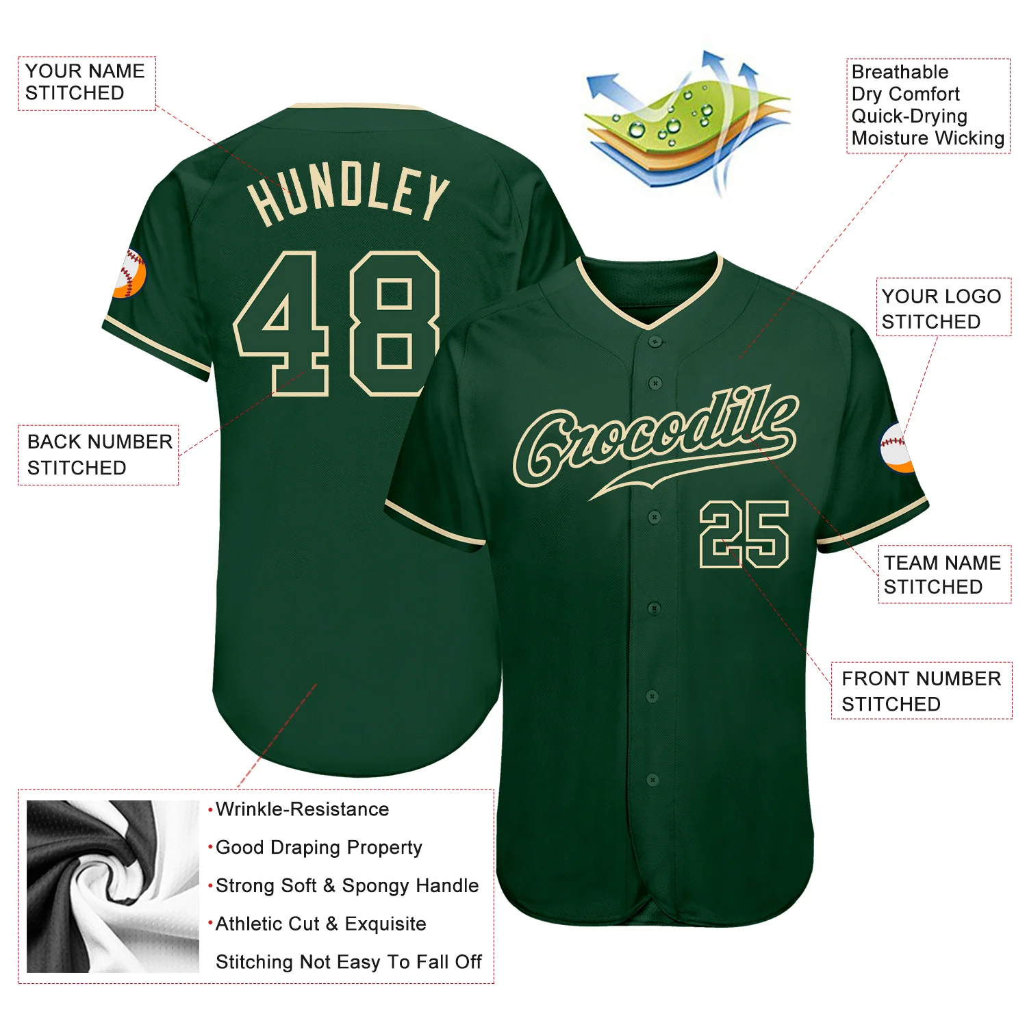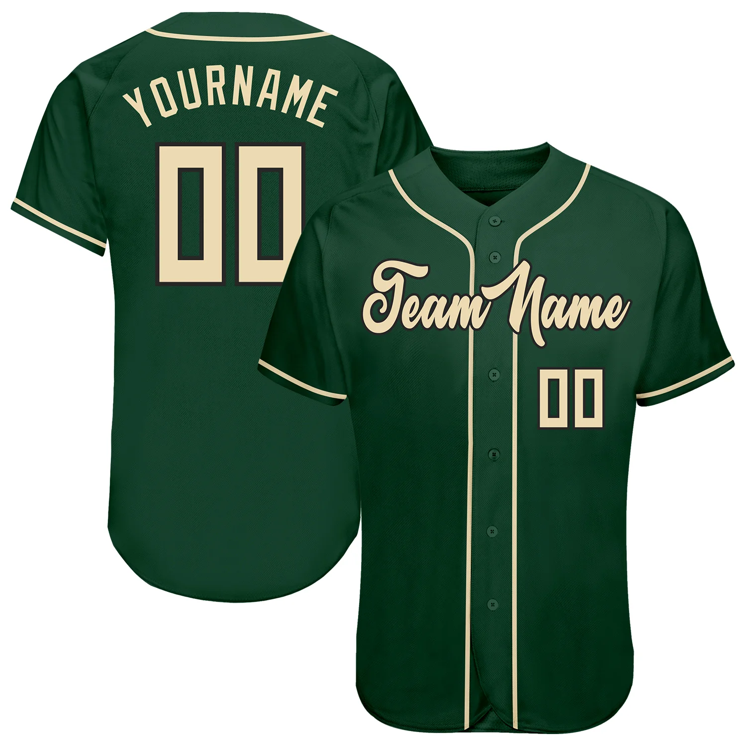Custom Green Cream-Black Authentic Baseball Jersey