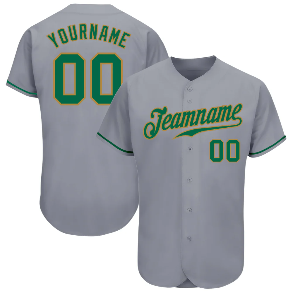 Custom Gray Kelly Green-Old Gold Authentic Baseball Jersey