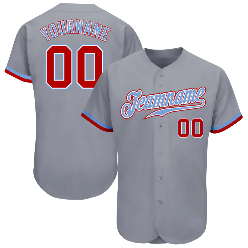 Custom Gray Red White-Light Blue Authentic Baseball Jersey