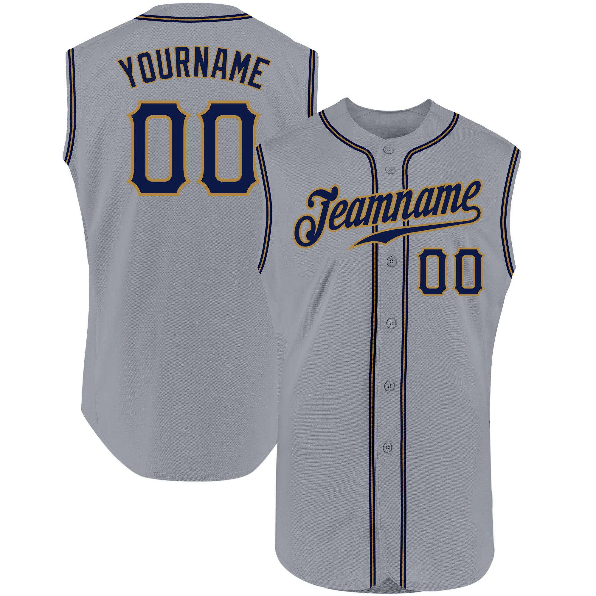 Custom Gray Navy-Gold Authentic Sleeveless Baseball Jersey