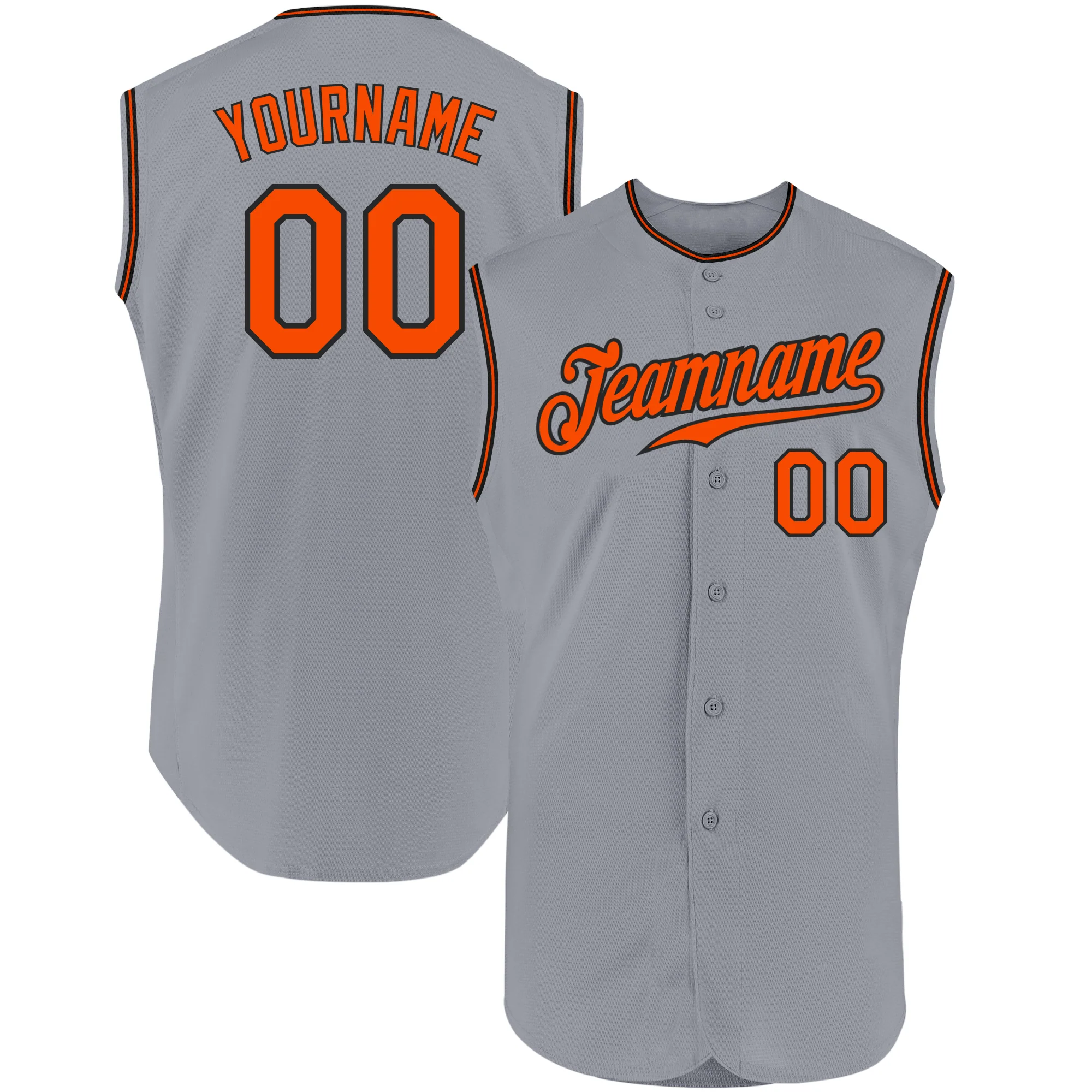 Custom Gray Orange-Black Authentic Sleeveless Baseball Jersey