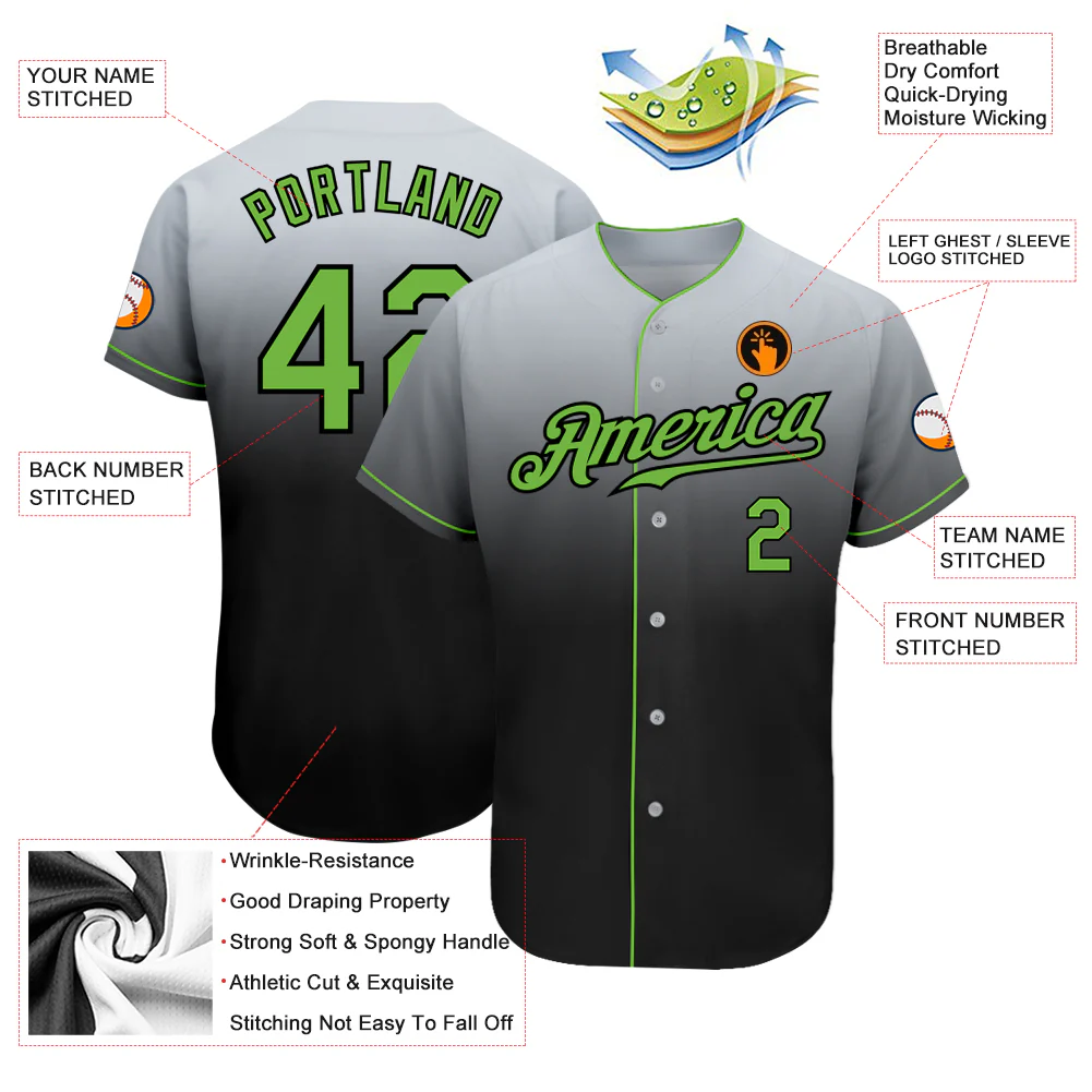 Custom Gray Neon Green-Black Authentic Fade Fashion Baseball Jersey