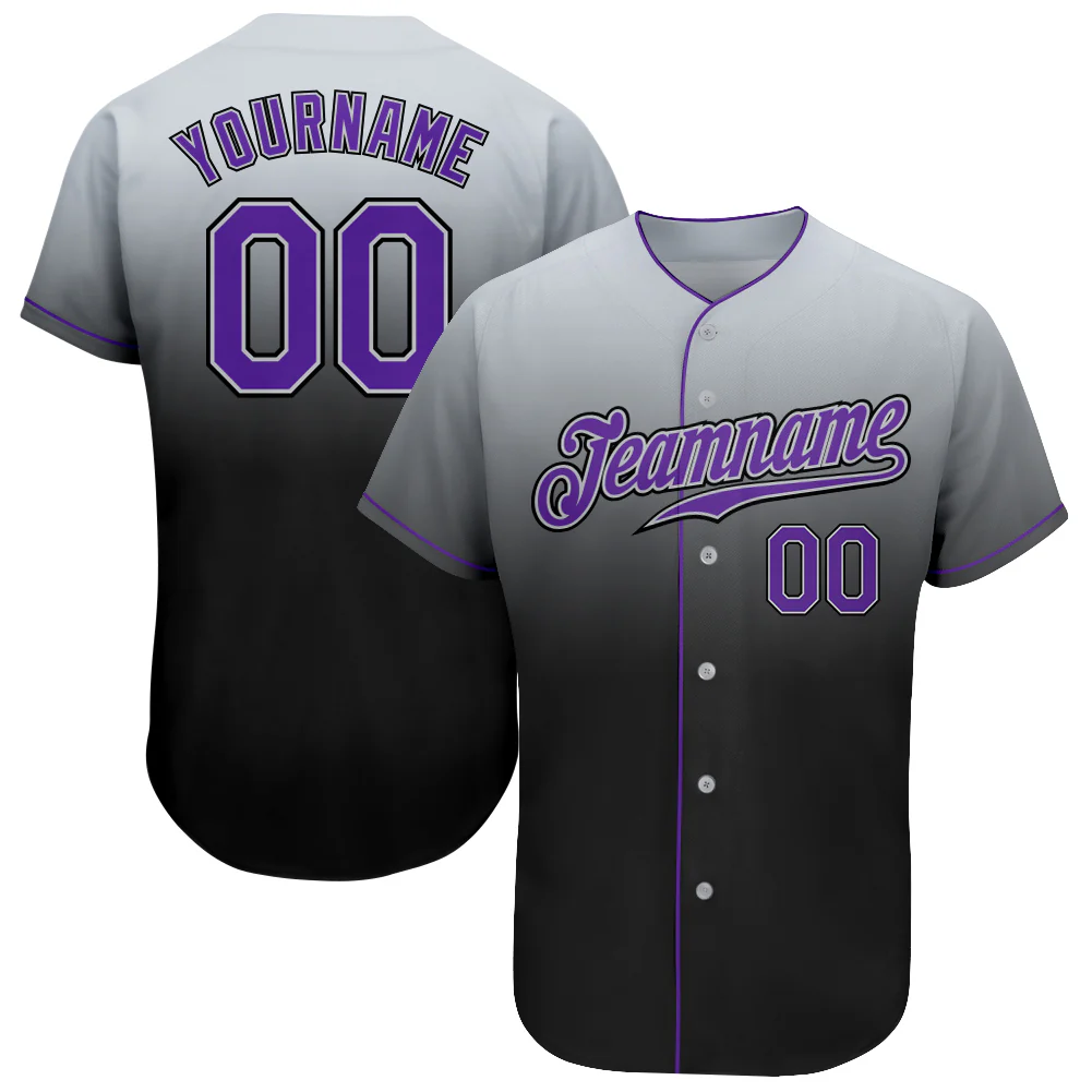 Custom Gray Purple-Black Authentic Fade Fashion Baseball Jersey