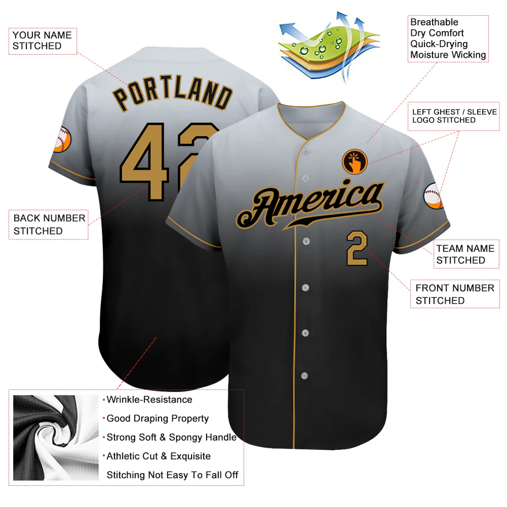Custom Gray Old Gold-Black Authentic Fade Fashion Baseball Jersey