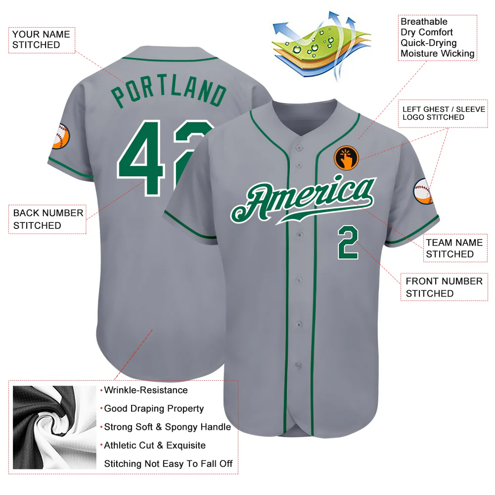 Custom Gray Kelly Green-White Authentic Baseball Jersey