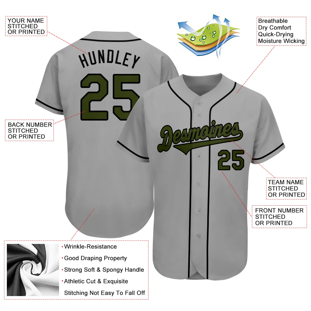 Custom Gray Olive-Black Authentic Memorial Day Baseball Jersey