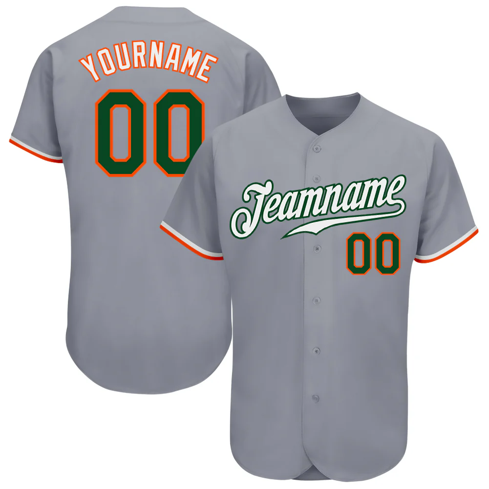 Custom Gray Green-Orange Authentic Baseball Jersey