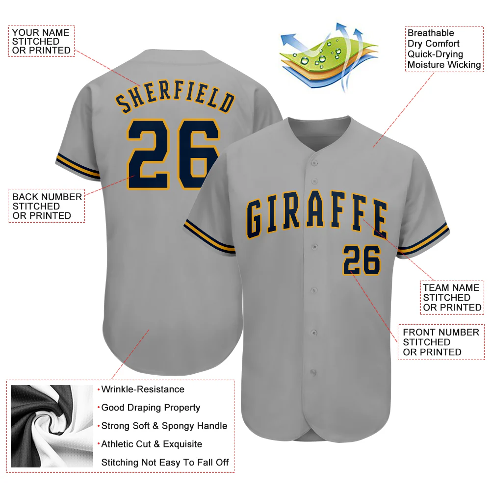 Custom Gray Navy-Old Gold Authentic Baseball Jersey