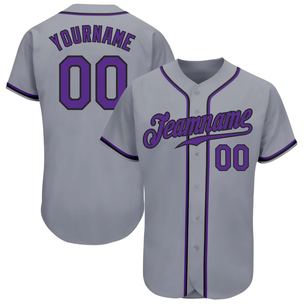 Custom Gray Purple-Black Authentic Baseball Jersey