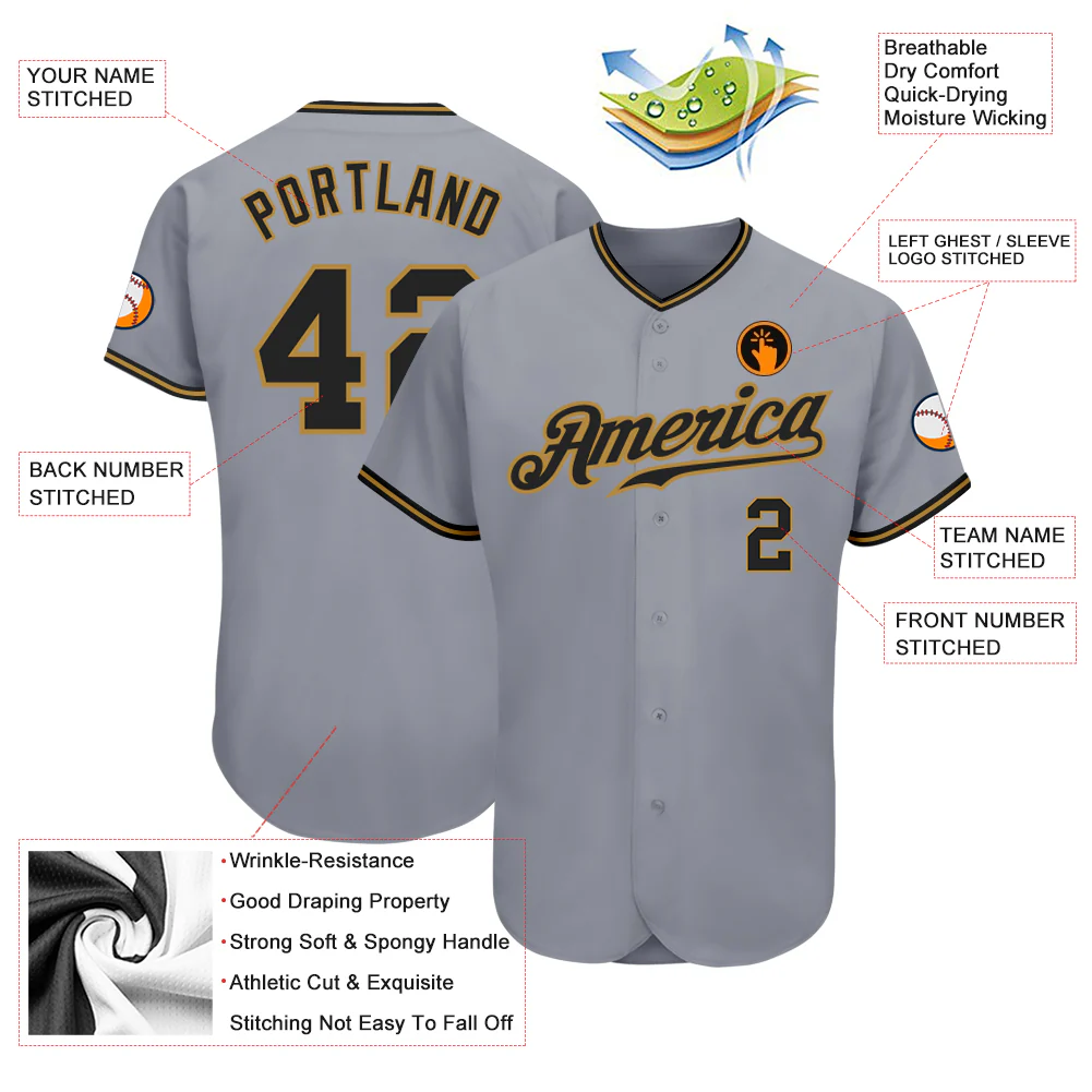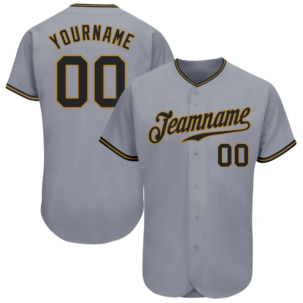 Custom Gray Black-Old Gold Authentic Baseball Jersey