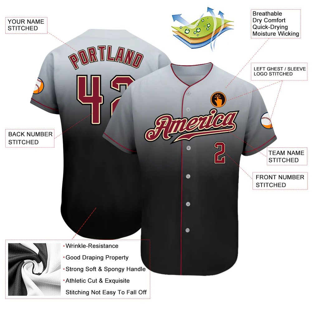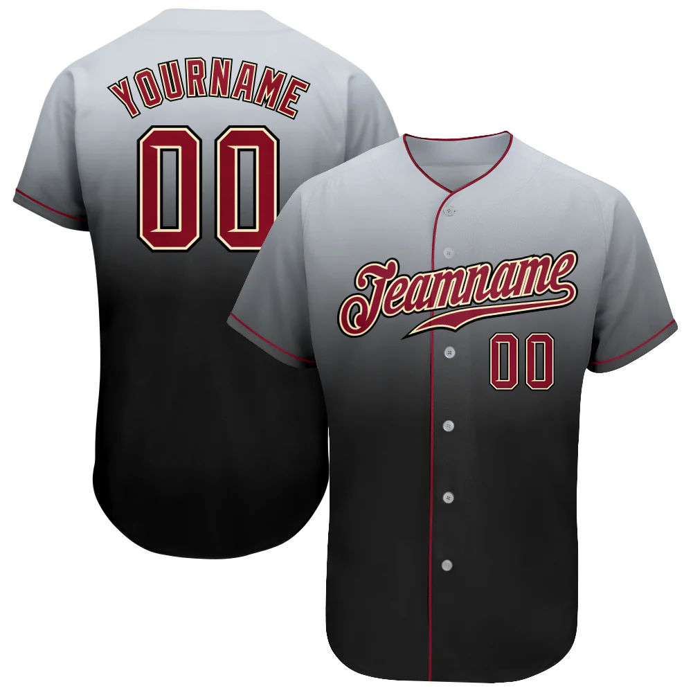 Custom Gray Crimson-Black Authentic Fade Fashion Baseball Jersey