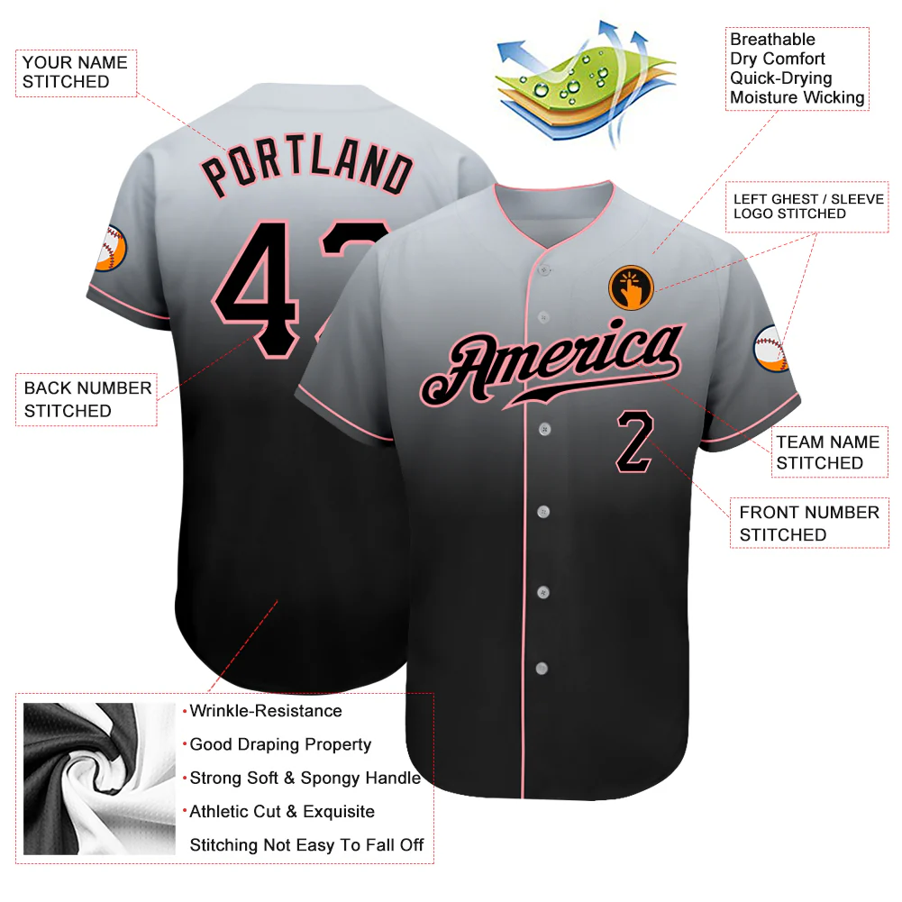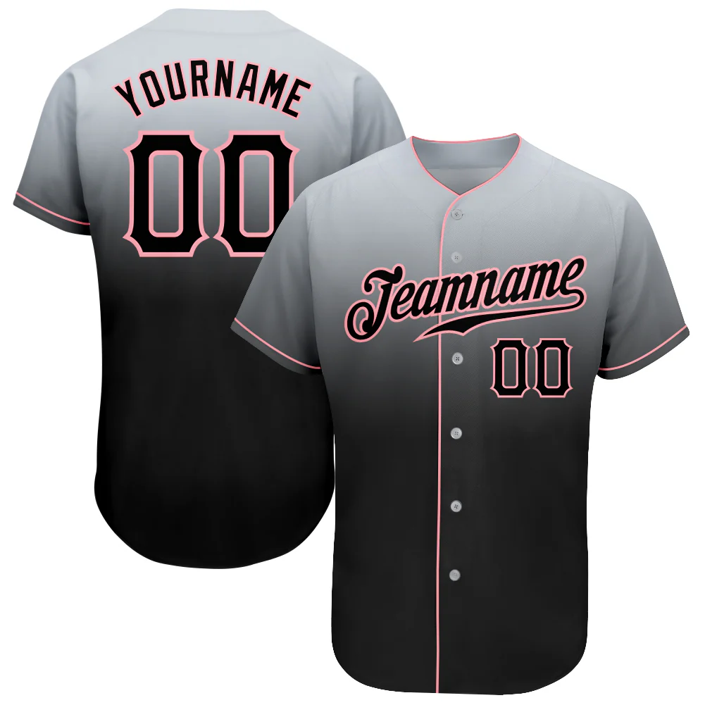 Custom Gray Black-Medium Pink Authentic Fade Fashion Baseball Jersey