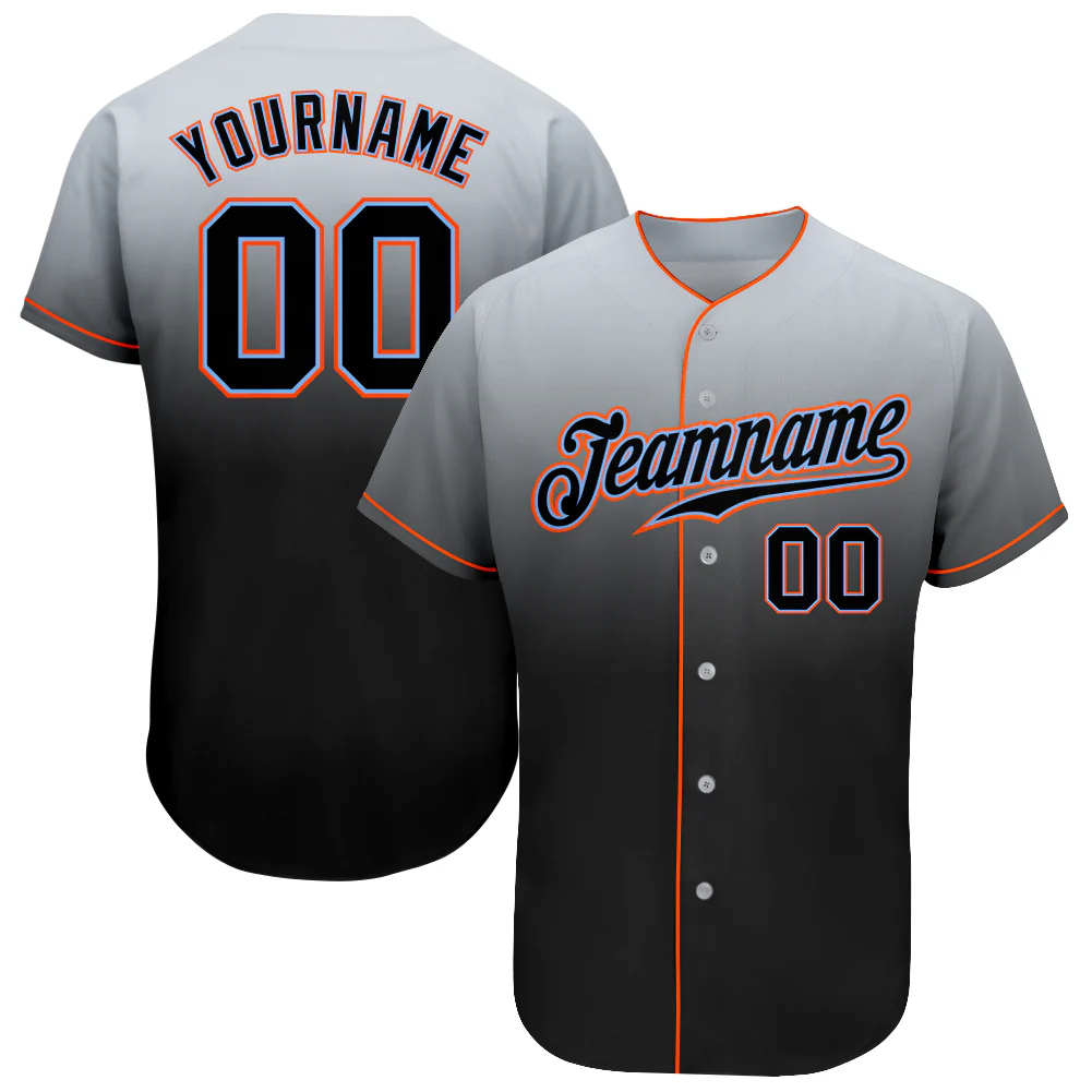 Custom Gray Black-White Authentic Fade Fashion Baseball Jersey