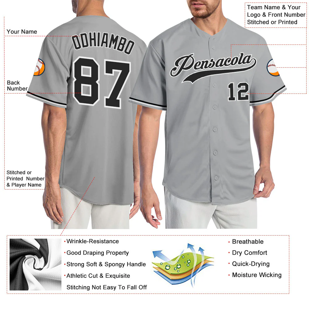 Custom Gray Black-Orange Authentic Baseball Jersey