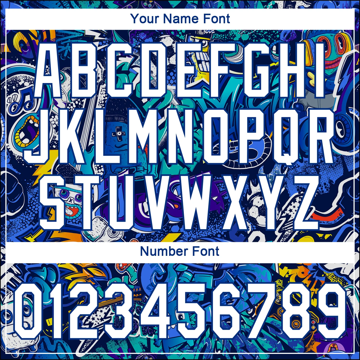 Custom Graffiti Pattern White-Royal 3D Authentic Baseball Jersey